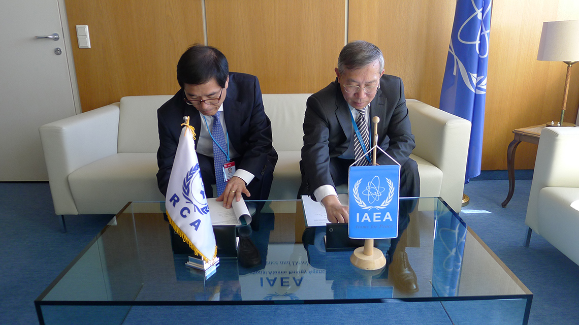 The IAEA and RCA Regional Office have formalized their cooperation to enhance cooperation in the performance of secretariat duties under the 2017 Regional Cooperative Agreement for research, development and training related to nuclear science and technology for Asia and the Pacific (RCA). Practical Arrangements outlining the terms of collaboration were signed by Mr. Dazhu Yang, Deputy Director General of IAEA Technical Programme Department and Mr. Hai Joo Moon, Director of the RCA Regional Office (RCARO) on 14 September 2017 at the IAEA headquarters in Vienna, Austria.