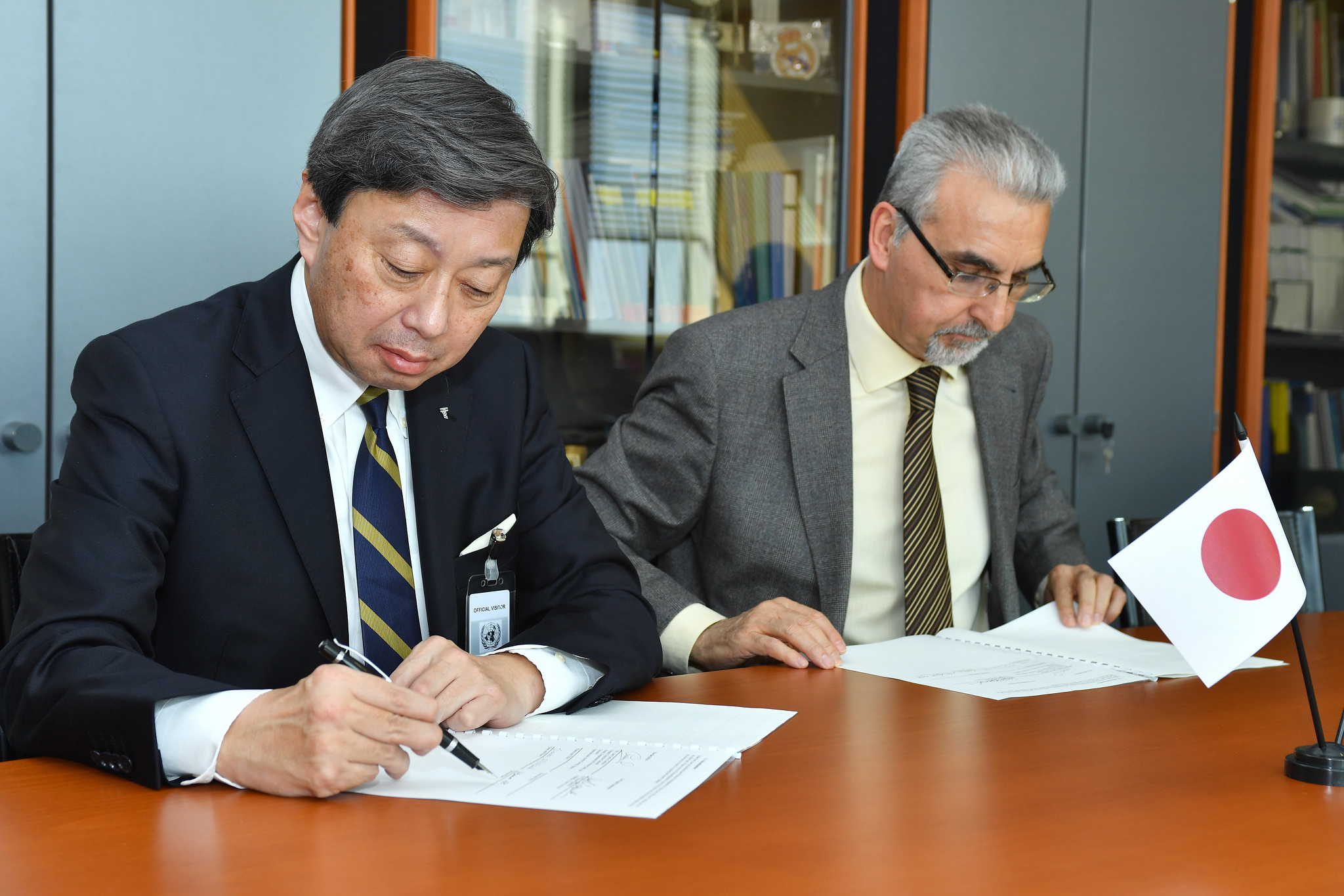 Juan Carlos Lentijo, IAEA Deputy Director General and Head of the Department of Nuclear Safety and Security and Tokai University Chancellor Kiyoshi Yamada, signed a Practical Arrangements agreement on 27 April 2018 at the IAEA’s headquarters in Vienna.