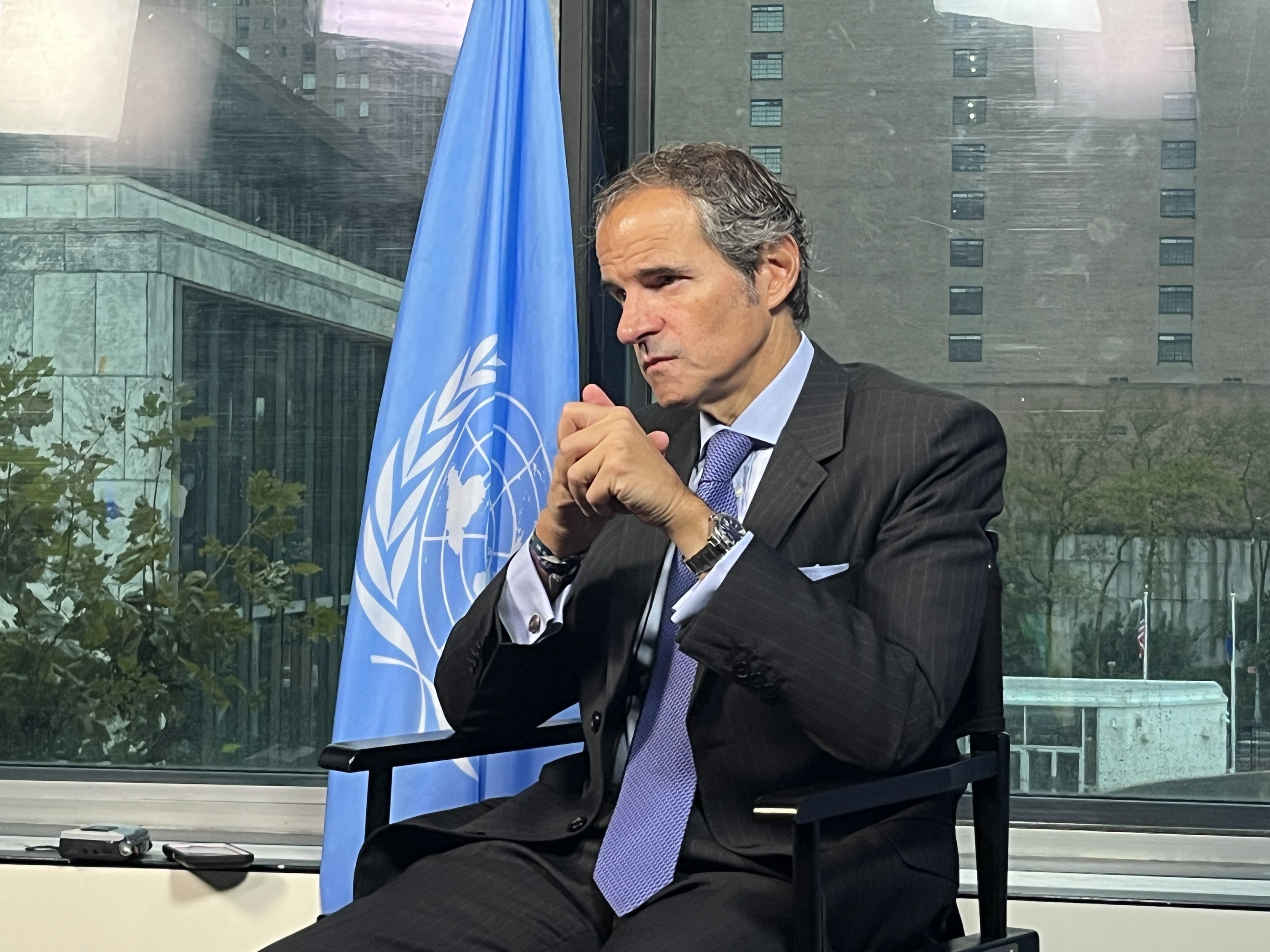 IAEA General General Rafael Mariano Grossi being interviewed at the United Nations Headquarters in New York during annual UN General Assembly. (Photo: F. Dahl/IAEA)