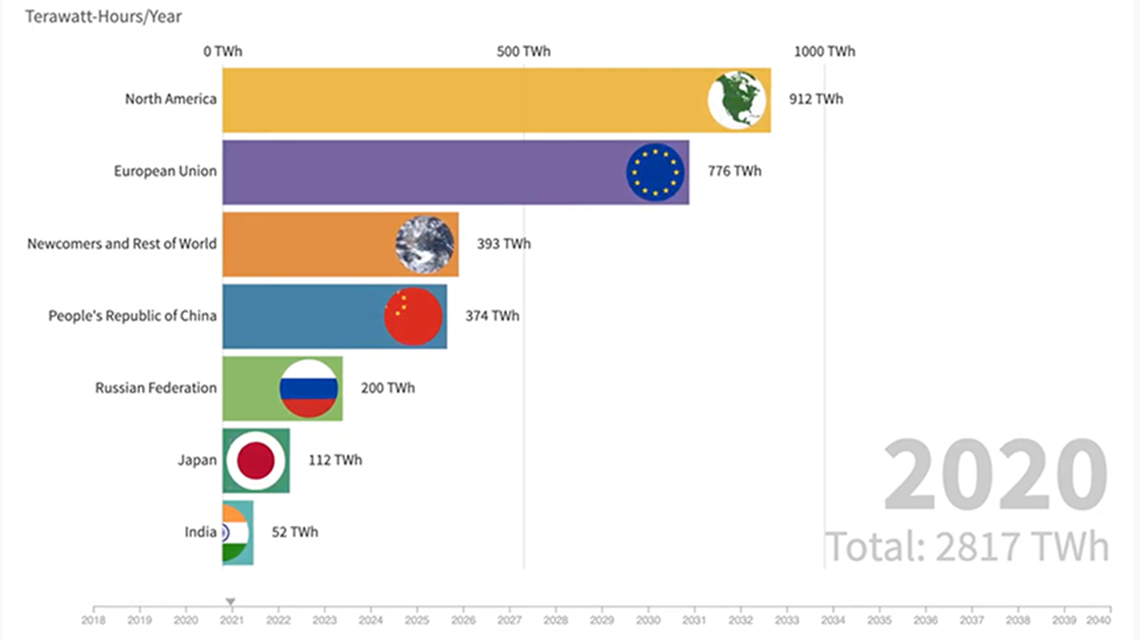 A new IAEA data animation shows that global nuclear power generation will need to significantly expand beyond its historical markets, including in so-called newcomer countries interested in introducing this reliable source of low carbon electricity, if the world is to have a reasonable chance at meeting climate change goals.