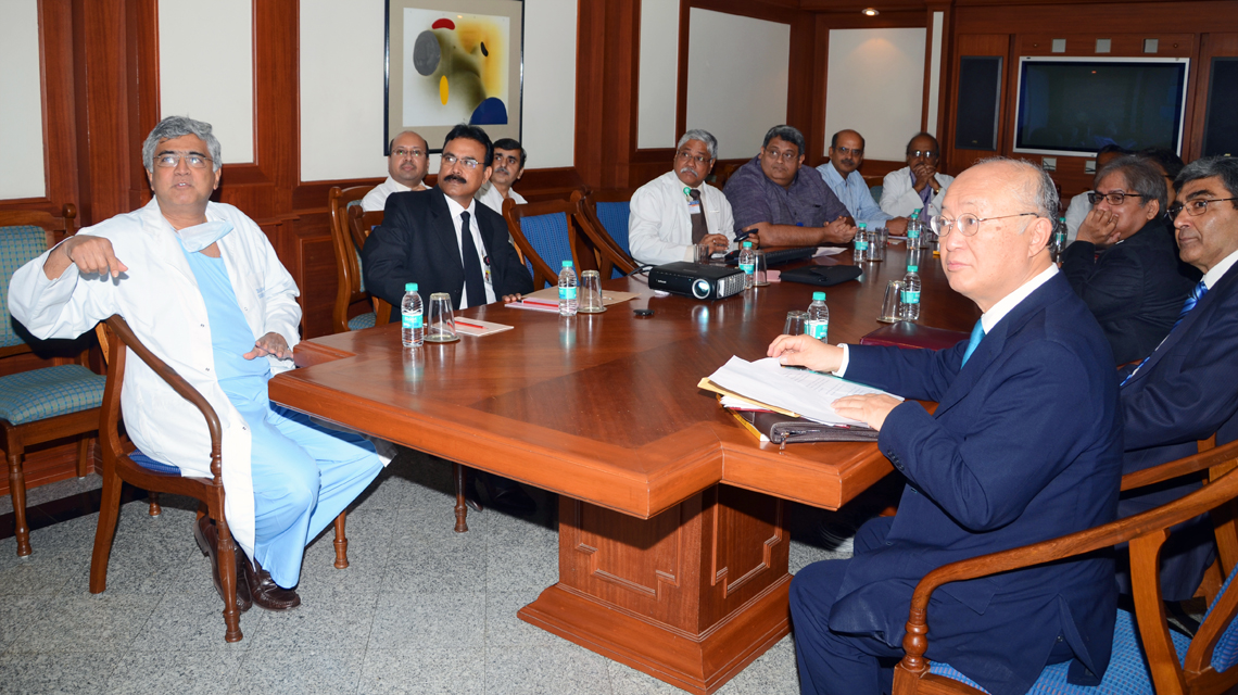 Earlier, Rajendra Achyut Badwe, Director of the Tata Memorial Centre, briefed Mr Amano on current work on cancer diagnosis and treatment as well as in clinical medicine, research and development, and on recent initiatives in public health.