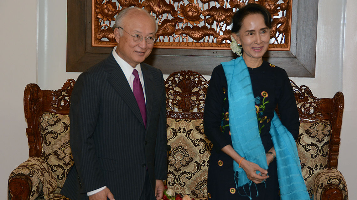 IAEA Director General Yukiya Amano highlighted the important role of nuclear science and technology in supporting sustainable development in his discussions with State Counsellor and Union Minister for Foreign Affairs Daw Aung San Suu Kyi, during his visit to Myanmar last week.