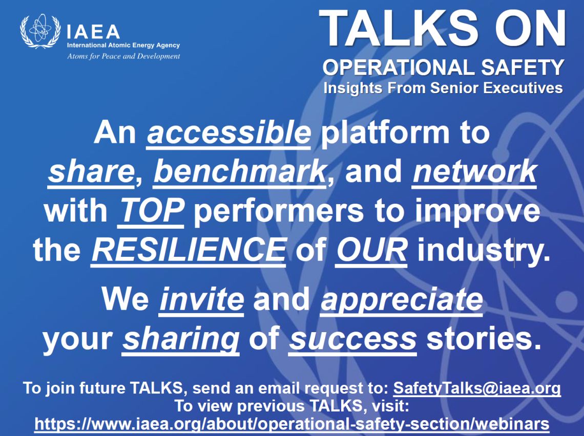 To join future Talks on Operational Safety, send an email request to SafetyTalks@iaea.org.
