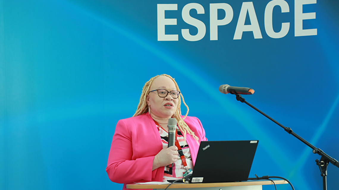 Dibuleng Mohlakwana speaking at the ‘Innovative Technologies for Nuclear Information Management’ side event during the 68th IAEA General Conference in September 2024. (Photo: IAEA)