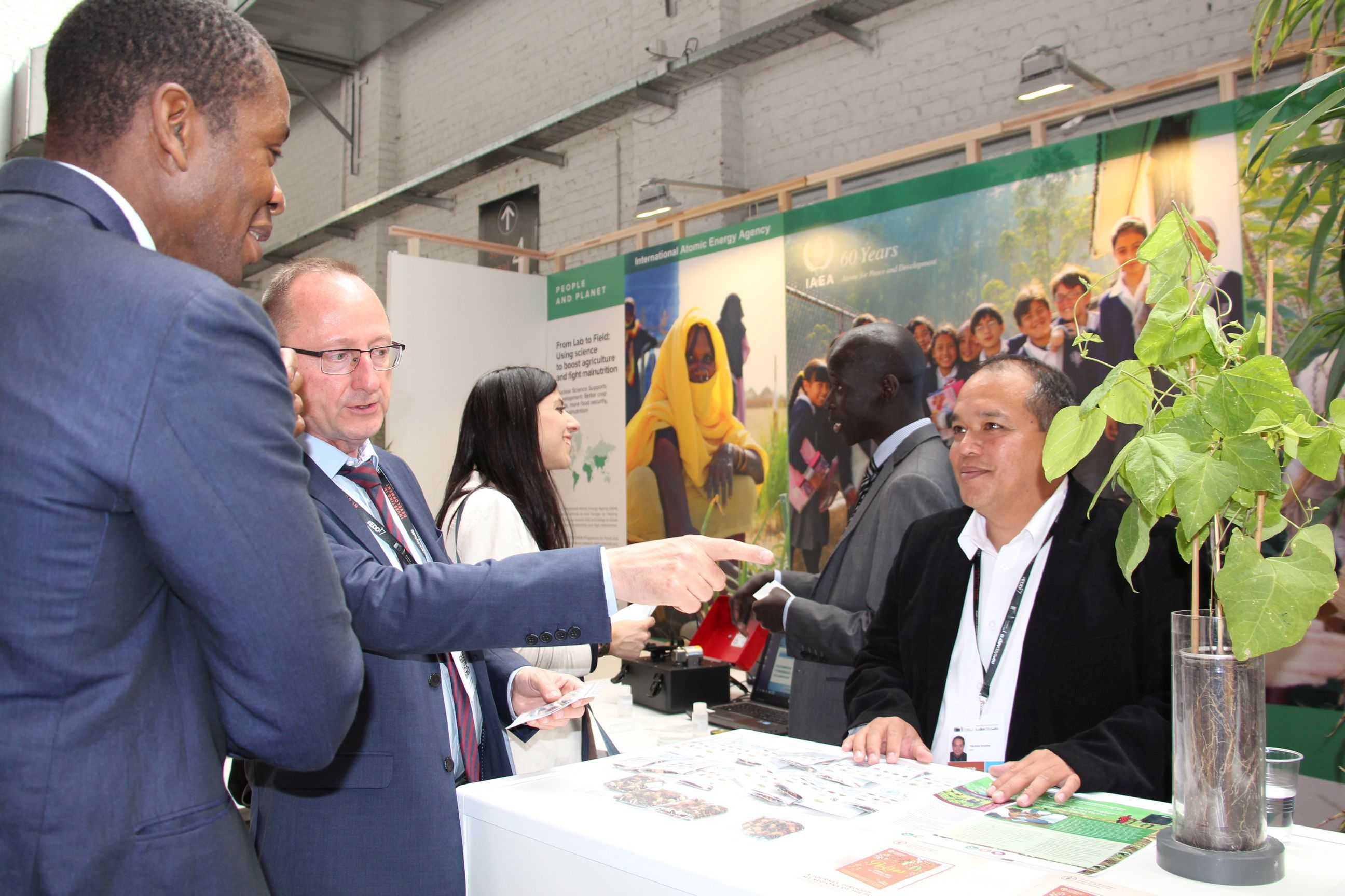 A visit to the IAEA’s exhibition stand, one of more than 75 stands at the event, gave conference goers a glimpse of the IAEA’s work around the world: Three countries and three stories illustrated how science is supporting development. In West Africa, farmers in Benin are reducing use of commercial fertilizer by growing pulses. In Sudan, scientific research is helping farmers to enhance agricultural water use efficiency. And policy makers in Latin America are improving their nutritional intervention programmes to fight childhood obesity.