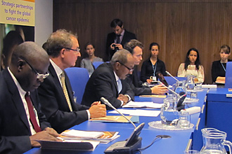 The event was opened with a statement by His Excellency, Mr. Mahmoud Hassan El Amin from Sudan, who introduced a panel of three speakers. Dr. Freddie Bray, from the International Agency for Research on Cancer (IARC), in his presentation discussed at length the power of global partnerships, such as that between the IAEA and World Health Organization (WHO), in promoting cancer control measures, and the need to build and maintain national cancer registries. Cancer registries are a vital tool in creating comprehensive cancer control methods to increase coverage in underrepresented areas of the world and to encourage governments to make registries a priority in their cancer control plans.