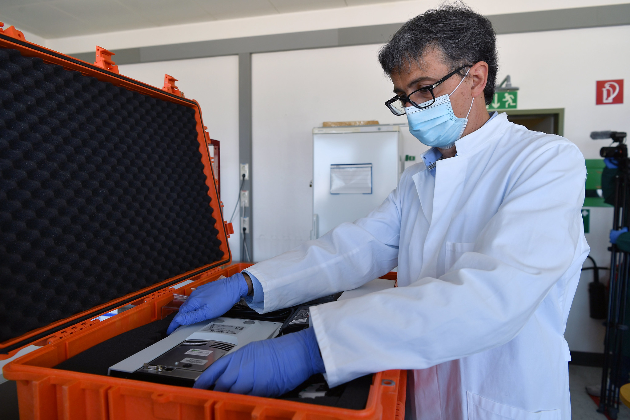 Giovanni Cattoli, Laboratory Head, Animal Production and Health Laboratory, Joint FAO/IAEA Centre of Nuclear Techniques in Food and Agriculture, checks a package&nbsp;ready to be sent&nbsp;to assist Member States to fight the COVID-19 virus. (Photo: D. Calma/IAEA)&nbsp;