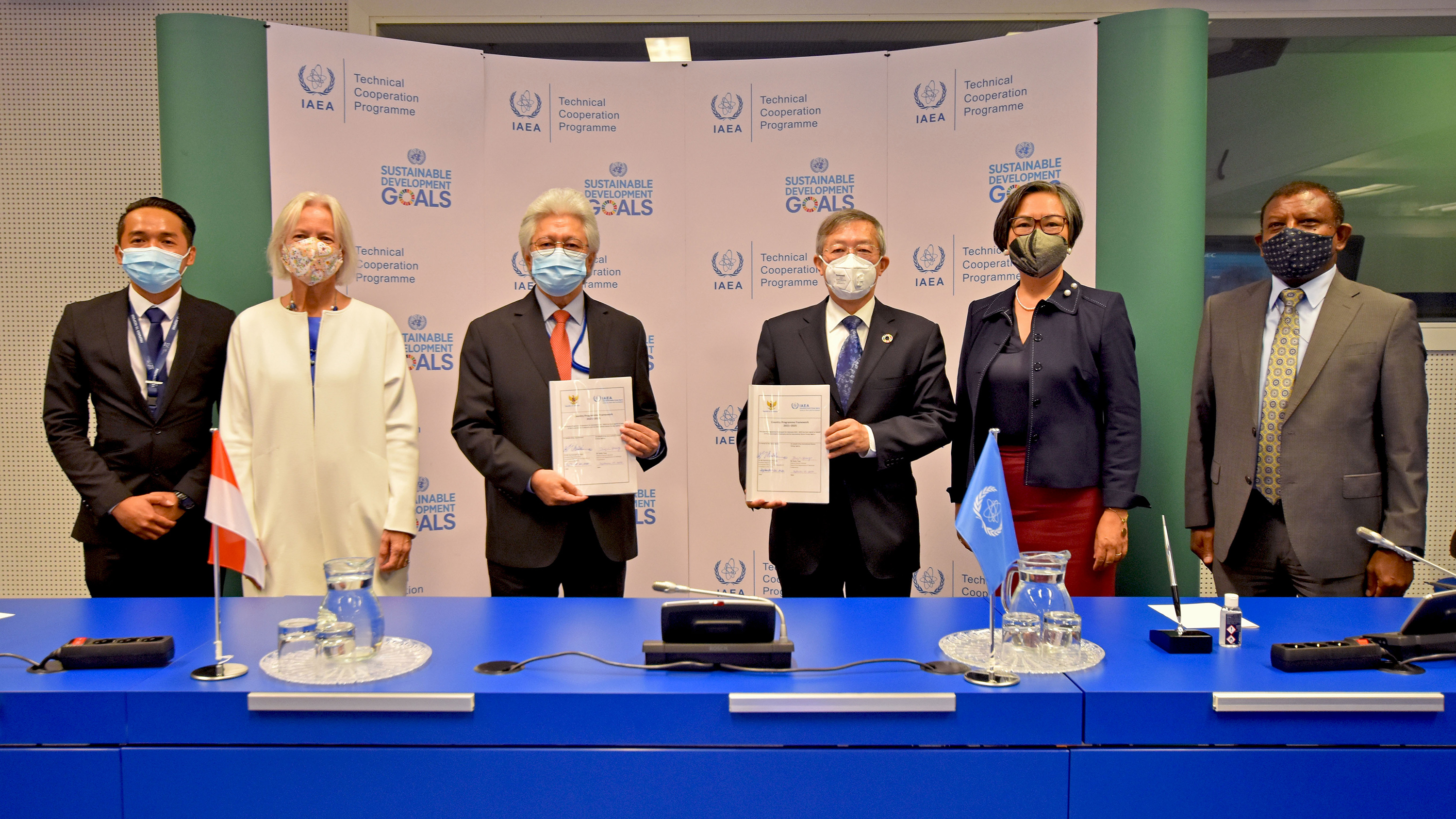 Darmansjah Djumala, Ambassador and Resident Representative of the Permanent Mission of Indonesia to the IAEA, and Dazhu Yang, IAEA Deputy Director General and Head of the Department of Technical Cooperation, signed Indonesian’s Country Programme Framework (CPF) for the period of 2021–2025 on 23 September 2020. A CPF is the frame of reference for the medium-term planning of technical cooperation between a Member State and the IAEA and identifies priority areas where the transfer of nuclear technology and technical cooperation resources will be directed to support national development goals.