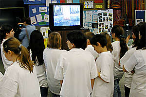 Students learn about water management and the IAEA's role during an exhibit on World Water Day in Vienna.