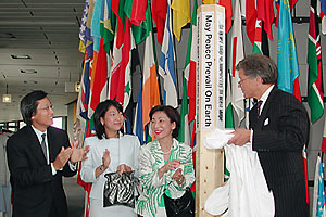 The Goi Peace Foundation in Japan presented the IAEA with a peace award for its contributions to world peace and security. The award -- a six-sided "Peace Pole" with the message "May Peace Prevail on Earth" in the six official languages of the UN -- was presented during a ceremony 10 July at IAEA headquarters in Vienna.
