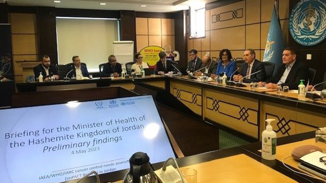 The Government of Jordan has expressed its commitment to address the growing cancer burden in the country and plans to launch its first National Cancer Control Plan (NCCP) with a related Action Plan for the period 2023-2030. These key documents will be developed based on the findings of an imPACT Review Mission conducted in Jordan from 30 April to 5 May by an international team of cancer experts from the IAEA, the World Health Organization (WHO) and the International Agency for Research on Cancer (IARC).