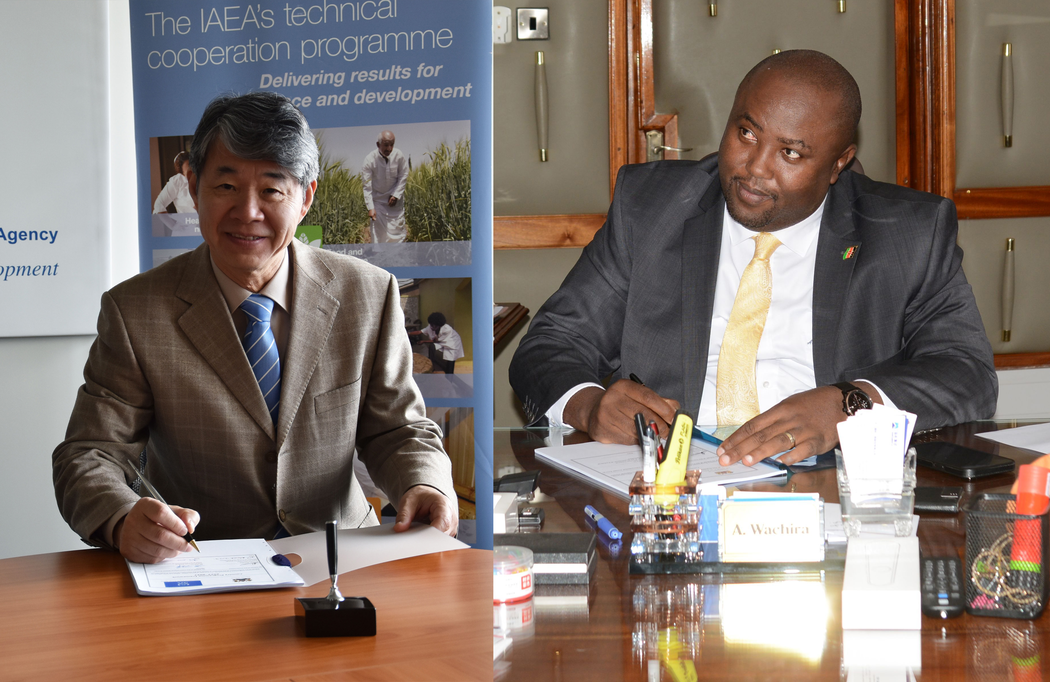 Alex Wachira, Principal Secretary, State Department for Energy, Ministry of Energy and Petroleum, and Hua Liu, IAEA Deputy Director General and Head of the Department of Technical Cooperation, signed Kenya's Country Programme Framework (CPF) for the period 2023–2027 on 02 March 2023, and 16 March 2023, respectively.