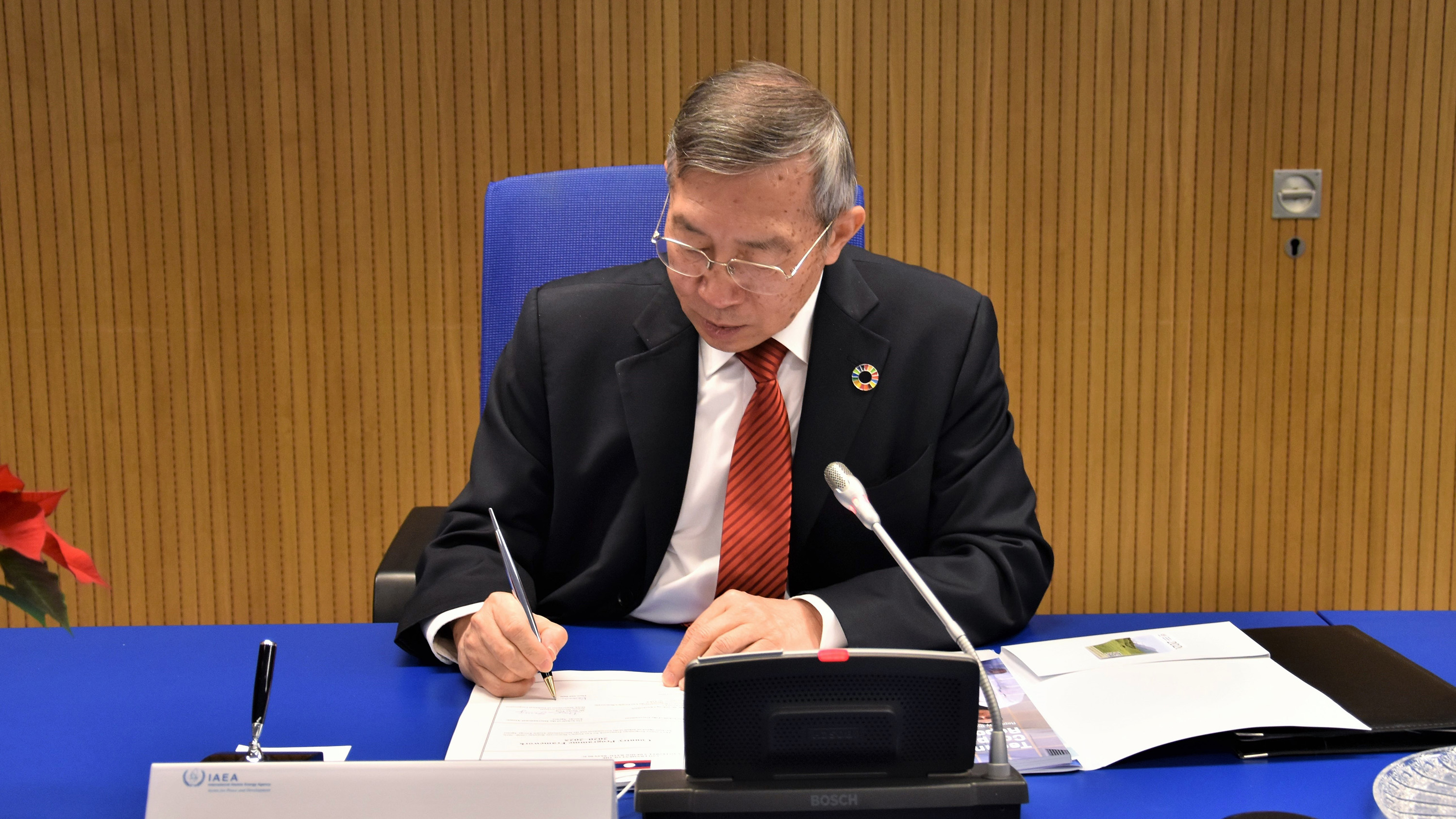 Sithong Chitnhothinh, Ambassador and Resident Representative at the Permanent Mission of the Lao People’s Democratic Republic to the IAEA, and Dazhu Yang, IAEA Deputy Director General and Head of the Department of Technical Cooperation, signed Lao People's Democratic Republic's Country Programme Framework (CPF) for the period of 2020-2025 on 18 December 2020. A CPF is the frame of reference for the medium-term planning of technical cooperation between a Member State and the IAEA and identifies priority areas where the transfer of nuclear technology and technical cooperation resources will be directed to support national development goals.