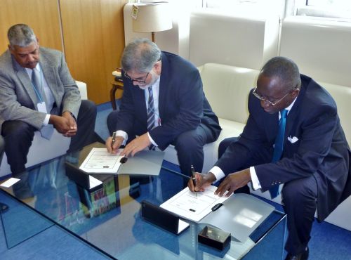 Dr. Ramadan M. Kuridan, Chairman of the Administrative Council, Libyan Atomic Energy Establishment, and Kwaku Aning, IAEA Deputy Director General and Head of the Department of Technical Cooperation, have signed Libya's Country Programme Framework (CPF) for the period of 2012 - 2017 on 20 September 2012. A Country Programme Framework (CPF) is the frame of reference for the medium-term planning of technical cooperation between a Member State and the IAEA and identifies priority areas where the transfer of nuclear technology and technical cooperation resources will be directed to support national development goals.