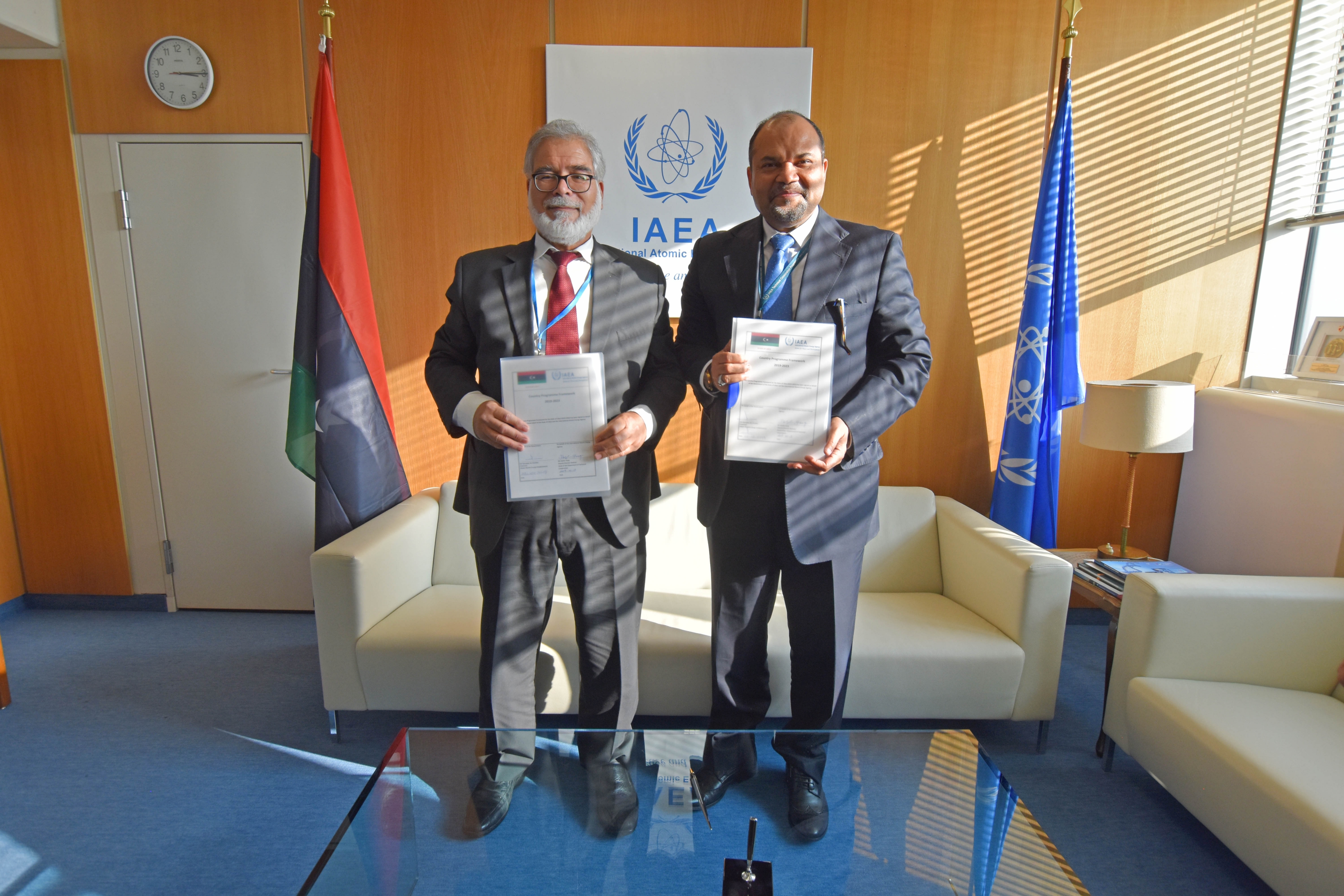 Mr Ramadan M. Kuridan, Chairman of the Libyan Atomic Energy Establishment, signed Libya’s Country Programme Framework (CPF) for the period of 2019-2023 on 22 October 2019 in a ceremony attended by Mr Shaukat Abdulrazak, Director of the Division for Africa, in his capacity as acting IAEA Deputy Director General and Head of the Department of Technical Cooperation. The CPF was previously signed by Mr Dazhu Yang, IAEA Deputy Director General and Head of the Department of Technical Cooperation. A CPF is the frame of reference for the medium-term planning of technical cooperation between a Member State and the IAEA and identifies priority areas where the transfer of nuclear technology and technical cooperation resources will be directed to support national development goals.