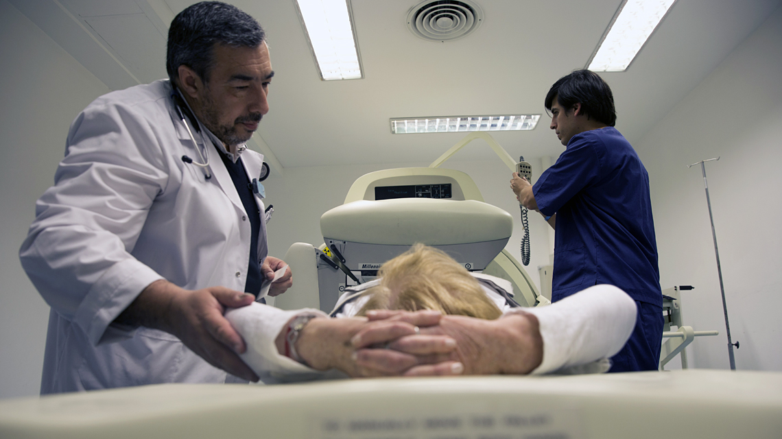 Buenos Aires, Argentina — Injection in, arms up, eyes closed. This is how 81-year-old Lola Fiskel plunges her body into a futuristic-looking machine at the Nuclear Diagnostics Centre Foundation in Buenos Aires. Thanks to machines like this one, which use radiation to see inside the human body, doctors have been able to diagnose Fiskel’s heart condition early enough to treat her.