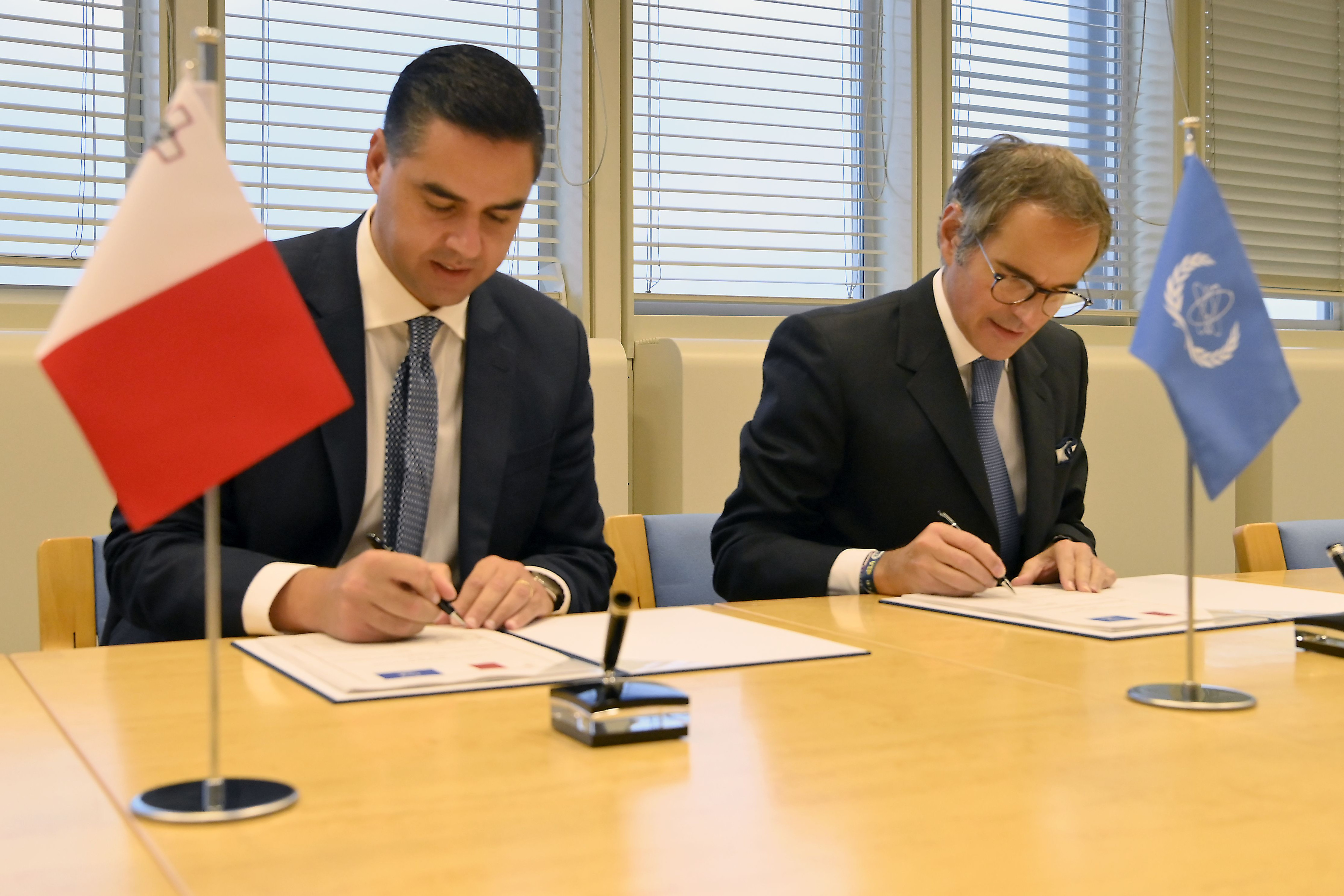 Ian Borg, Minister for Foreign and European Affairs and Trade of Malta, and Rafael Mariano Grossi, Director General of the International Atomic Energy Agency, signed Malta’s Country Programme Framework (CPF) for the period of 2024–2028. (Photo: D. Calma/IAEA)