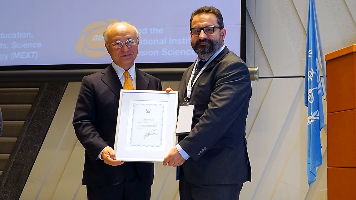 Sebastian Brezinsek, from EUROfusion Consortium, won the prize as lead author of the paper ‘Fuel Retention Studies with the ITER-Like Wall in JET’. He received the prize at the 26th IAEA Fusion Energy Conference in Kyoto, Japan, on Monday. The conference was opened by IAEA Director General Yukiya Amano.