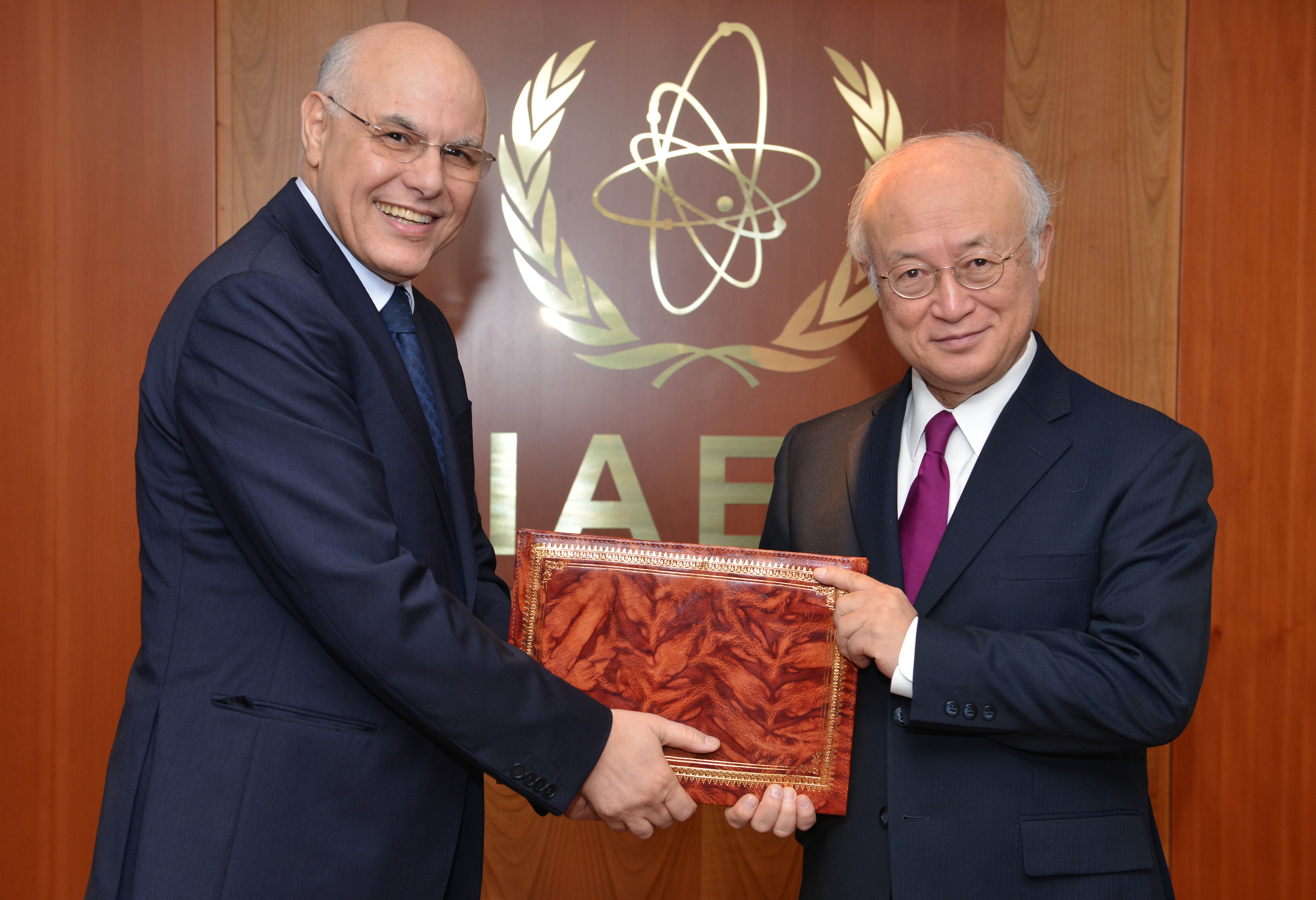 Ali El Mhamdi, Resident Representative of Morocco depositing his country&rsquo;s instrument of ratification of the Amendment to the CPPNM to IAEA Director General Yukiya Amano. (Photo: D. Calma/IAEA)