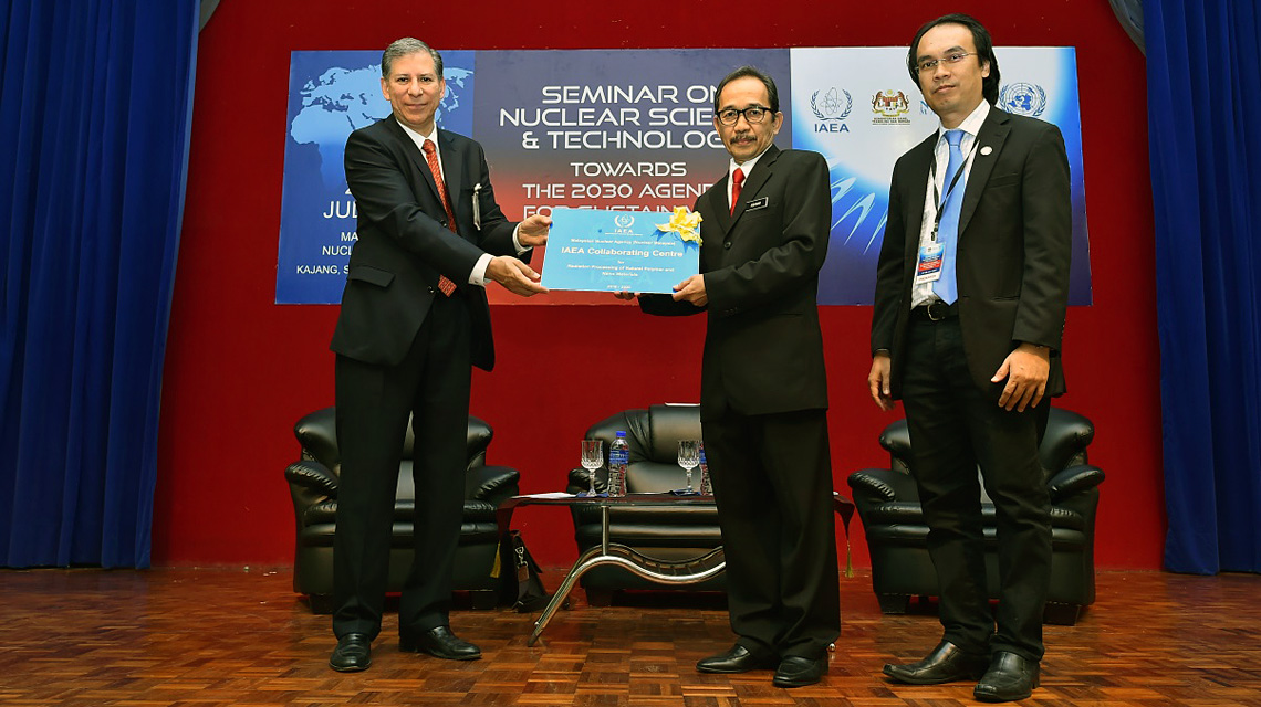 IAEA’s Oscar Acu?a handing a plaque to Mohamad Ashhar, Director General of the Malaysian Nuclear Agency, designating the Malaysian Nuclear Agency as an IAEA Collaborating Centre.