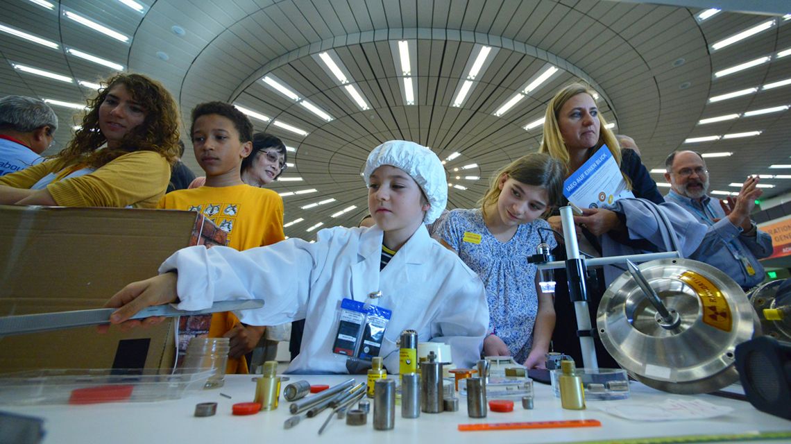At 16:45 on 22 April, eight-year-old Tariro stood outside Austria’s Vienna International Centre with her father and brother. The doors were about to open to the public interested in nuclear science and technology. Inside, IAEA scientists and engineers waited behind their exhibition booths with excitement.