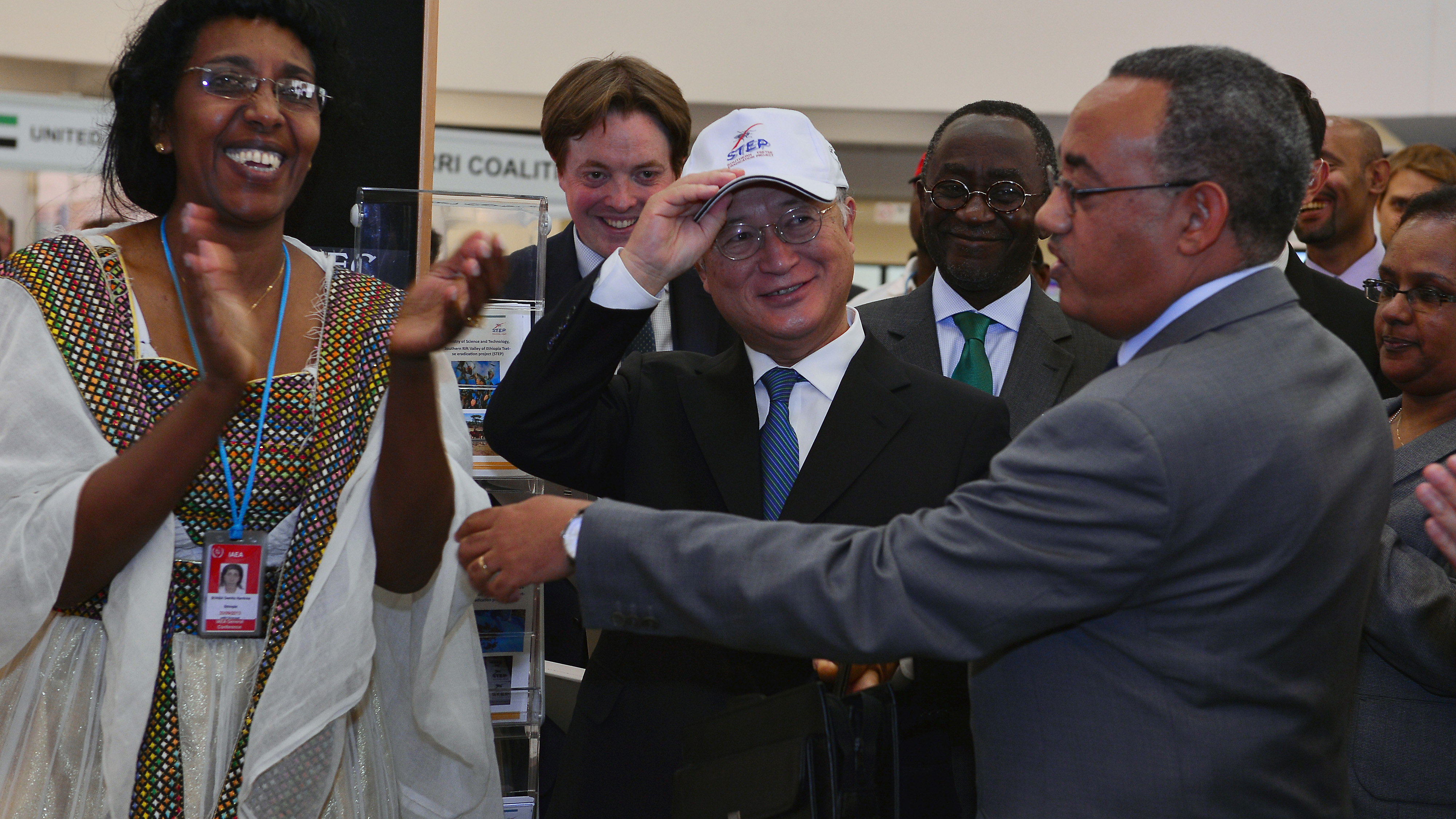 Director General Yukiya Amano attends the opening of the Ethiopian Exhibit at the IAEA's 57th Annual General Conference. (Photo: D. Calma/IAEA)