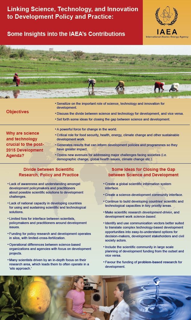 Staff from the IAEA's Department of Technical Cooperation have participated in the 40th Anniversary Conference of the International Institute for Applied Systems Analysis (IIASA), contributing a poster on the topic 'Linking Science Technology and Innovation to Development Policy and Practice'. ?The poster highlighted the importance of developing a stronger interface between science, policy and practice - a challenge that is high on the agenda of all of UN specialized agencies, including the IAEA.?