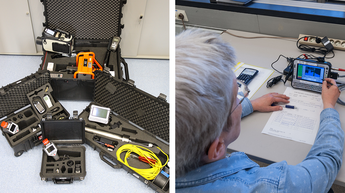 Technicians prepare, calibrate and pack up the devices, which are carried by inspectors or — if they are too bulky — are shipped to their destination ahead of time. The most widely used hand-held equipment is non-destructive analysis instruments. These detect the presence of nuclear material (uranium, plutonium and thorium) and its specific characteristics. Specialized instruments assess physical characteristics — temperature, weight, volume, thickness and light emission/absorption — of nuclear materials.