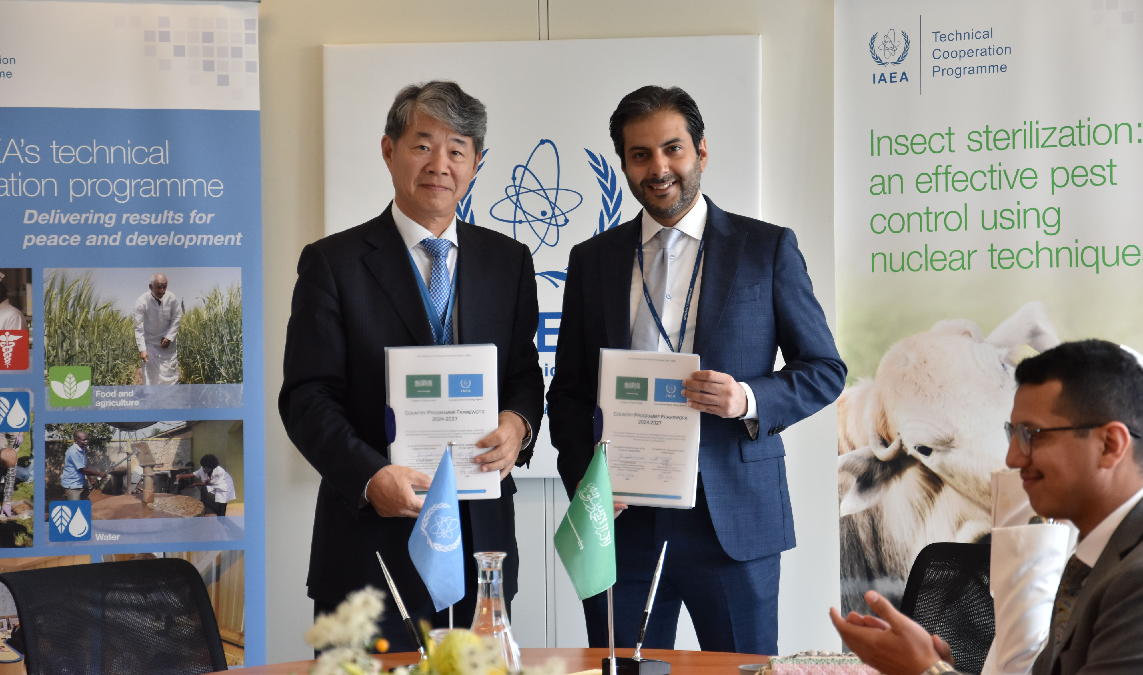 Mr Fahad Alsayyari, Director General of the Atomic Energy Department of the Ministry of Energy of the Kingdom of Saudi Arabia, and Mr Hua Liu, IAEA Deputy Director General and Head of the Department of Technical Cooperation, signed the Kingdom of Saudi Arabia’s Country Programme Framework (CPF) for the period of 2024-2027 on 18 September 2024. A CPF is the frame of reference for the medium-term planning of technical cooperation between a Member State and the IAEA and identifies priority areas where the transfer of nuclear technology and technical cooperation resources will be directed to support national development goals.