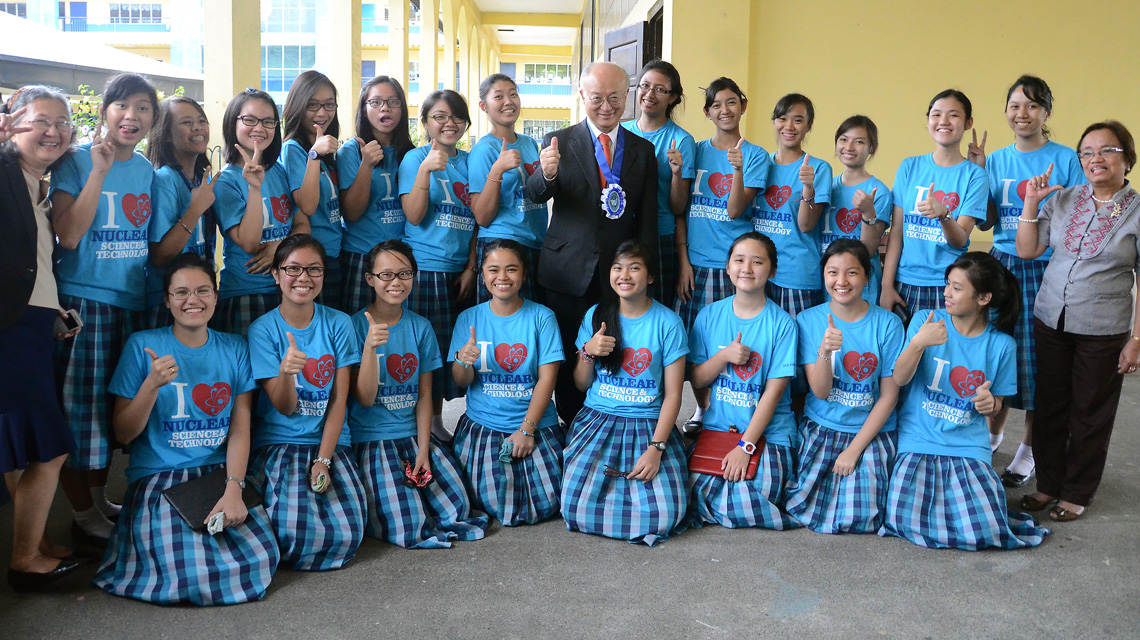 Mr Amano spoke to students during a visit to a high school that benefits from an IAEA programme to raise the interest of students in nuclear science and technology. He spoke about the importance of science and technology for development, noting that nuclear science is making an important contribution in a wide range of fields including human health, water management, agriculture, the environment and industry. "Science is the basis of the future not only for your country, but also for individuals such as yourselves," he told the students and encouraged them to persevere in their studies and keep up their interest in science.