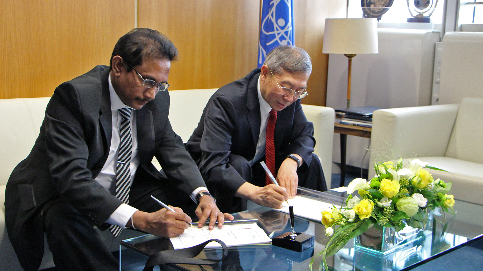 T.M.R. Tennakoon, Director General, Sri Lanka Atomic Energy Board and Mr Dazhu Yang, IAEA Deputy Director General and Head of the Department of Technical Cooperation, signed Sri Lanka’s Country Programme Framework (CPF) for the period of 2019–2025. (Photo: H. Pattison/IAEA)