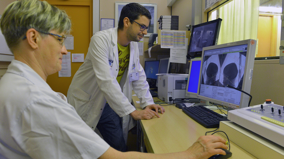 A medical physicist and radiation therapist work together to ensure treatment is given correctly. (Photo: D. Calma/IAEA)