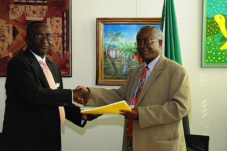 Ambassador Mattern Lumbanga, Resident Representative of Tanzania to the IAEA and Mr Kwaku Aning, IAEA Deputy Director General and Head of the Department of Technical Cooperation, have signed Tanzania 's Country Programme Framework (CPF) for the period of 2012 - 2017 on 22 September 2011.