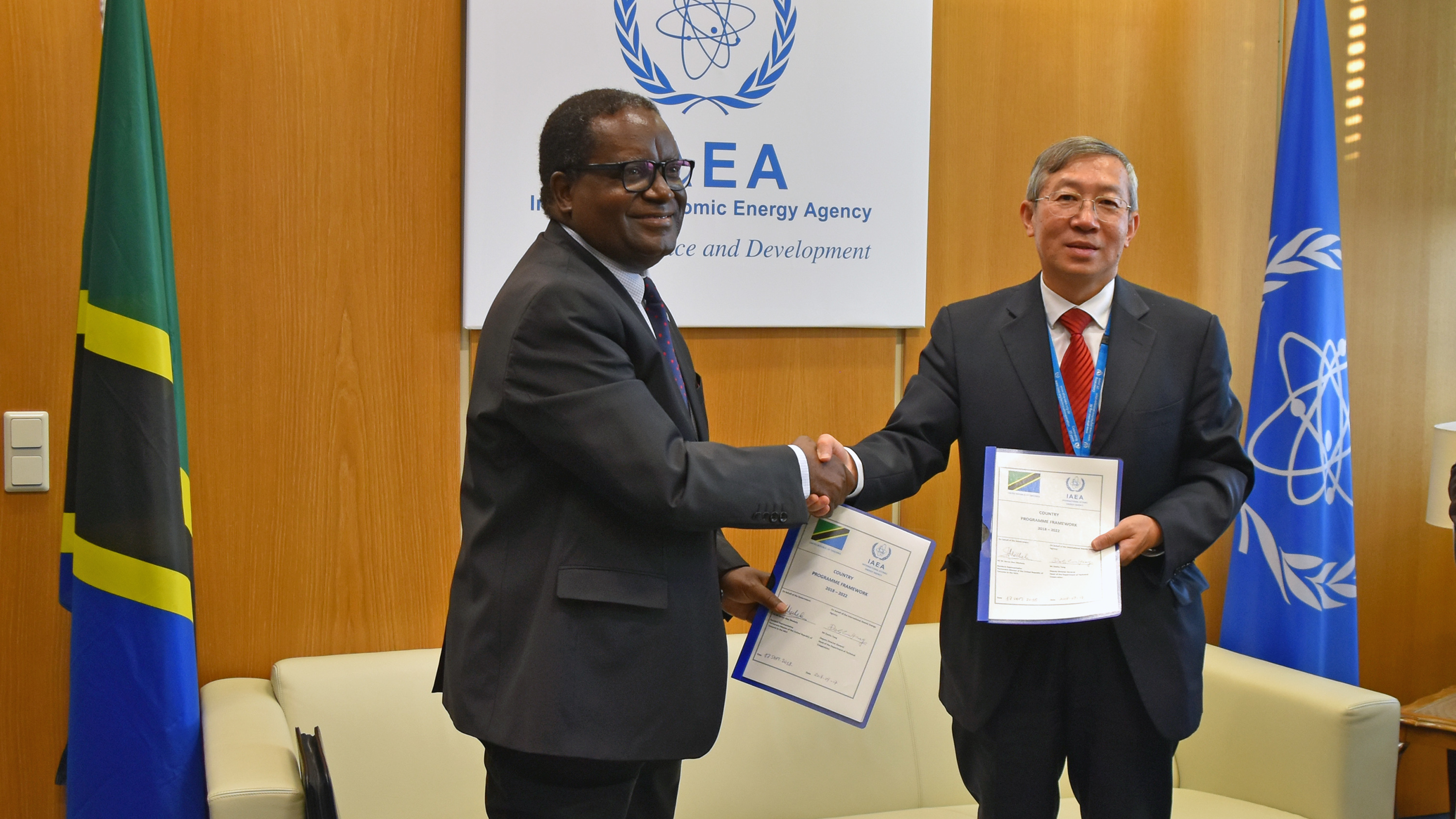 James Alex Msekela, Ambassador, Permanent Representative, Permanent Mission of the United Republic of Tanzania, and Mr Dazhu Yang, IAEA Deputy Director General and Head of the Department of Technical Cooperation, signed the United Republic of Tanzania’s Country Programme Framework (CPF) for the period of 2018–2022 on 17 September 2018. A CPF is the frame of reference for the medium-term planning of technical cooperation between a Member State and the IAEA and identifies priority areas where the transfer of nuclear technology and technical cooperation resources will be directed to support national development goals.