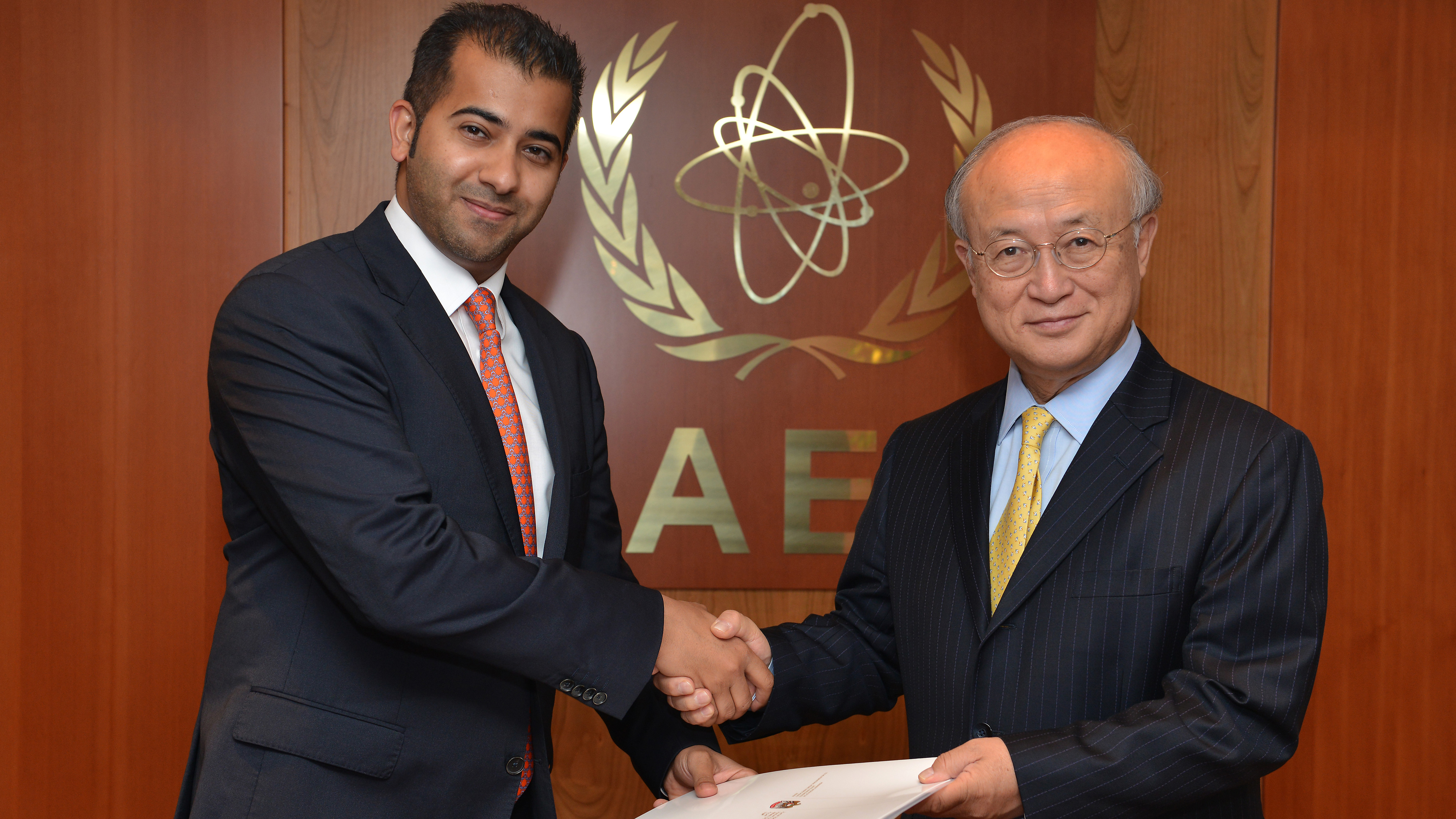 UAE Ambassador Hamad Ali Alkaabi signed and delivered the instrument of ratification to IAEA Director General Yukiya Amano on 7 July 2014.