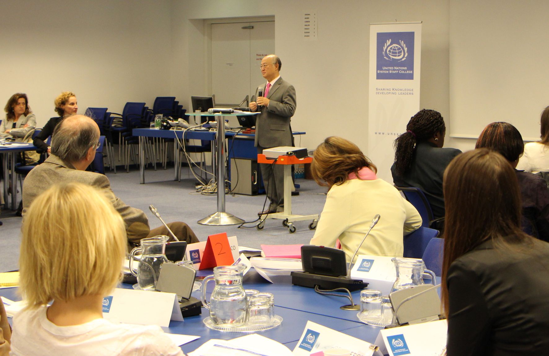Inspired by the United Nations Summer Academy, held annually by the UN System Staff College, the UN Reflection Forum covered key areas of the post-2015 development framework, such as global governance, emerging new partners in development, and the rise of new centres of economic activity. Participants at the Forum also discussed cooperation within the international development arena as a foundation for sustainable development growth, and engaged in practical exercises on developing priorities and processes for the world we want beyond 2015.