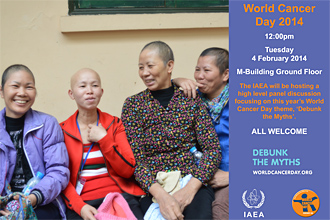 The International Atomic Energy Agency (IAEA) will be convening a midday event on 4 February 2014 at its headquarters to mark World Cancer Day. Debunk the Myths, the theme of this year's World Cancer Day, aims to encourage greater public discussion of some of the pervasive myths surrounding cancer - that we don't need to talk about it, that there are no symptoms of cancer, that there's nothing we can do about it, or that people don't have the right to cancer care.