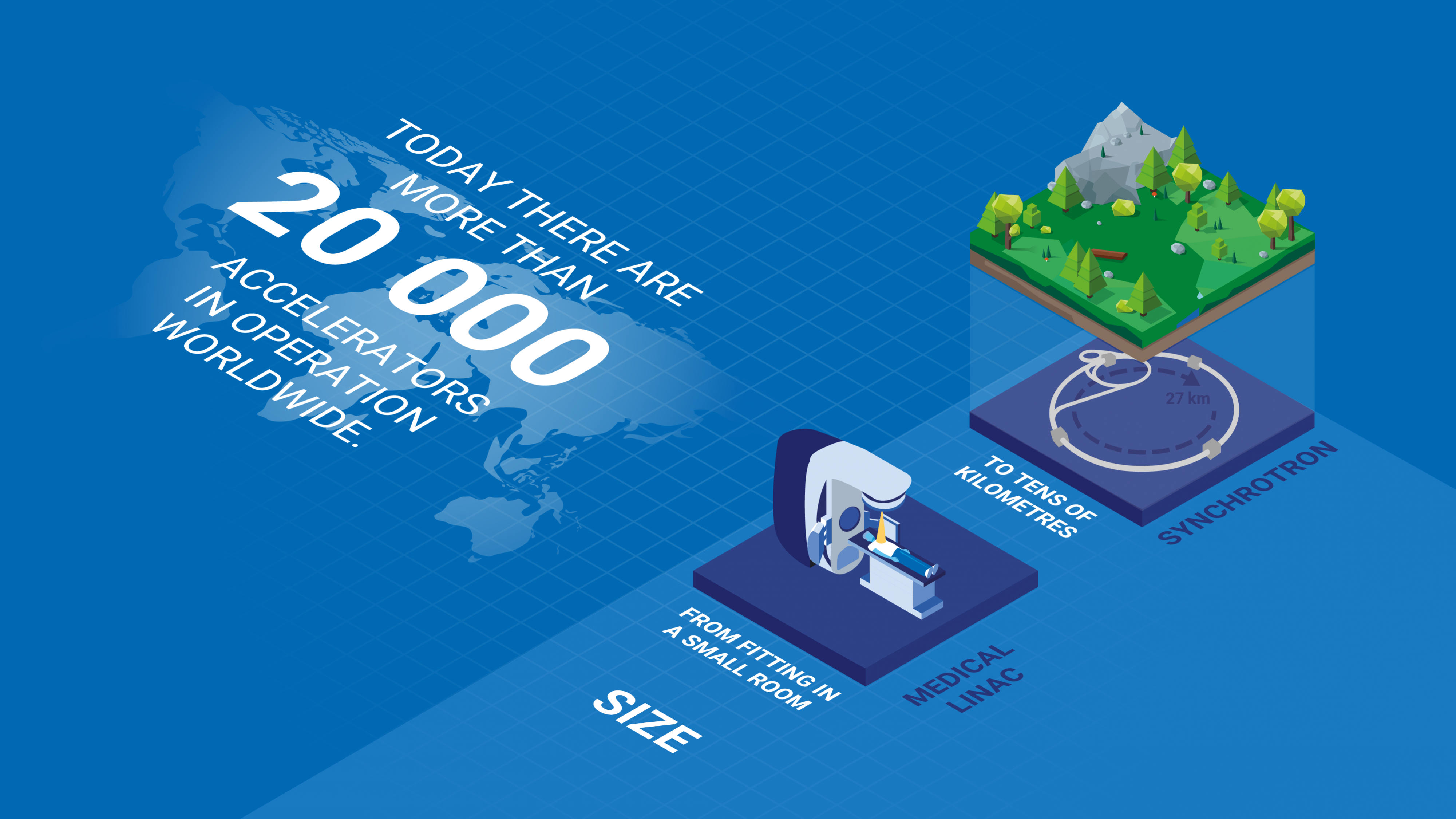 The more than 70 synchrotrons are the giants among particle accelerators. They are used for scientific research and are best known for helping us understand the fundamental laws of our universe but also for numerous applications. Scientists use synchrotrons to study chemistry, biomedicine, natural and cultural heritage, the environment, and much more.