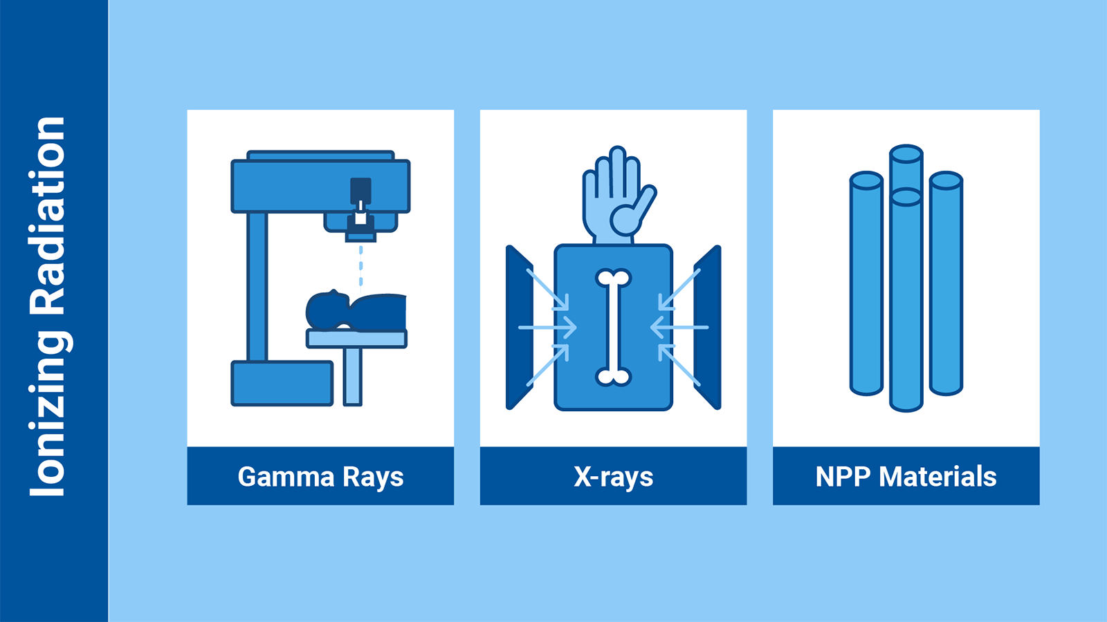 While the electric field of a neutral atom is weak, an electrically charged or ionized atom has a strong electrical field, making it strongly attracted to oppositely-charged ions and molecules. Atoms can be ionized by collisions with other atoms, ions and subatomic particles. They can also be ionized by exposure to gamma or X ray radiation. Ionizing radiation refers to radiation that has enough energy to break an electron away from an atom. It can also chemically alter material, for example damaging DNA in living tissue.