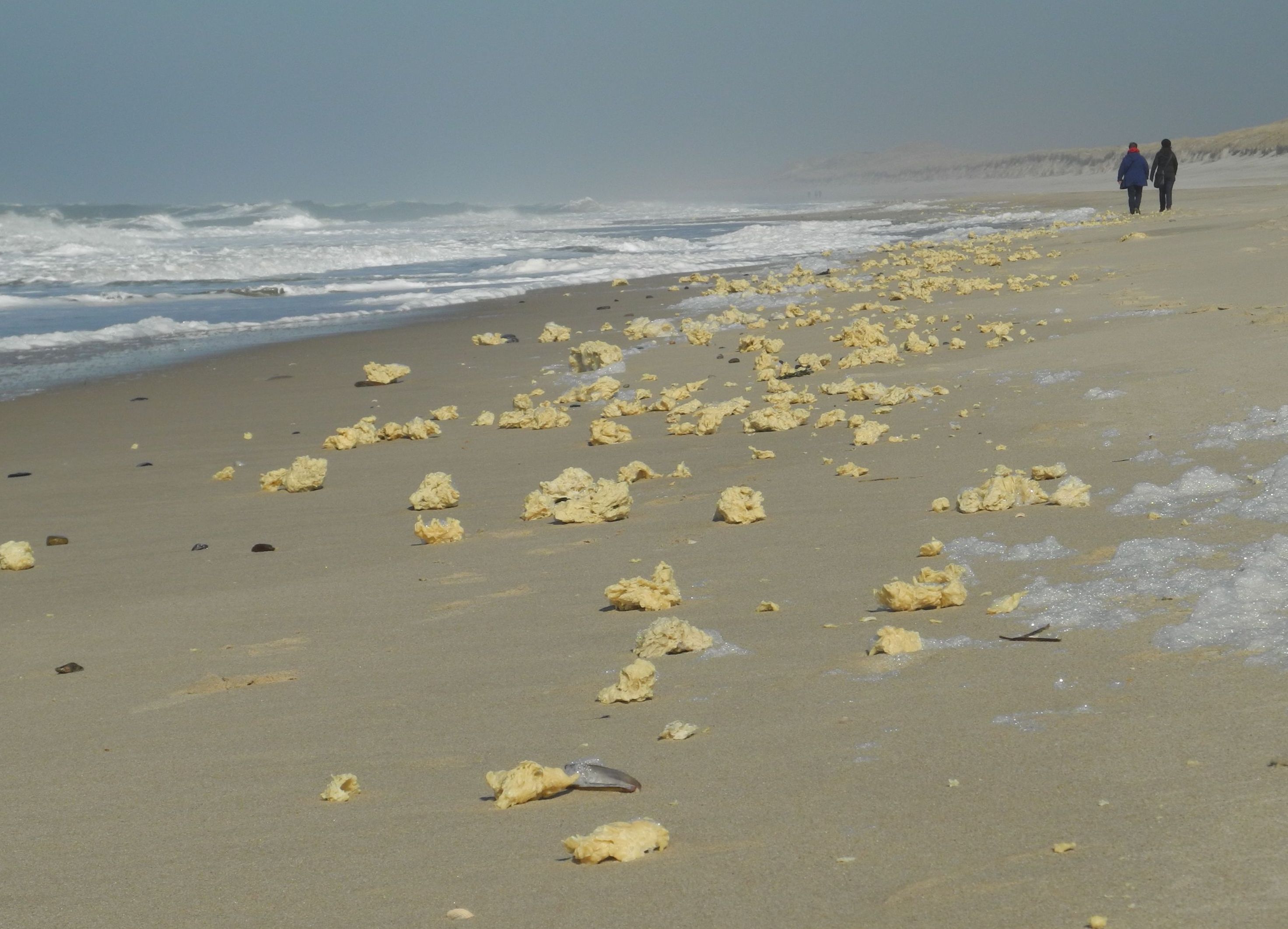 In contact with cool waters, paraffin solidifies and can accumulate along beaches for several kilometres. In 2014 more than 50 tons washed ashore on the German island of Sylt in the North Sea. Varying in size from several millimetres to more than 25 centimetres in diameter, large paraffin deposits can pose a serious threat to wildlife.