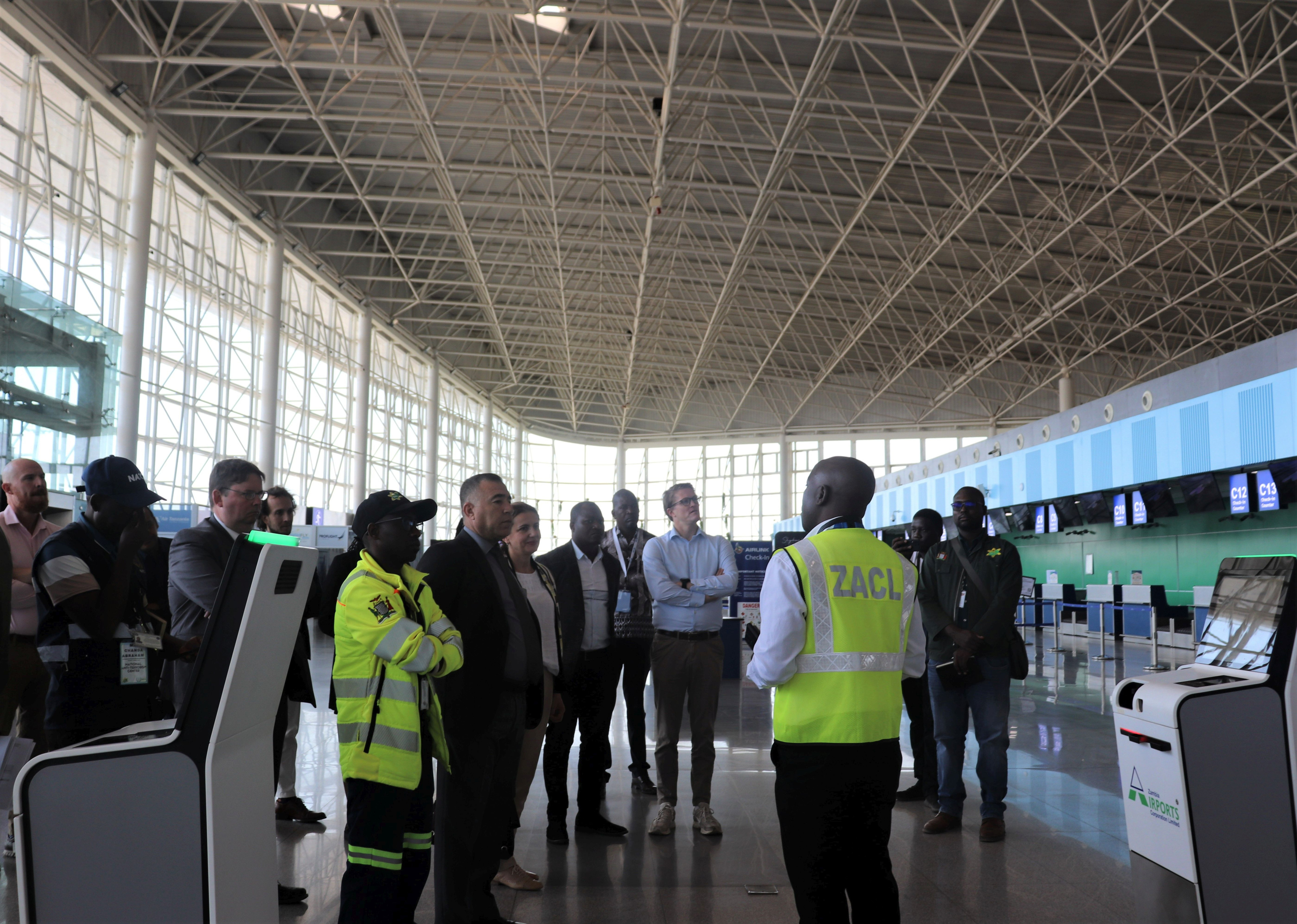 <p>Members of the INSServ team visited the Kenneth Kaunda International Airport during the IAEA mission to Zambia. (Photo: Radiation Protection Authority, Zambia)</p>