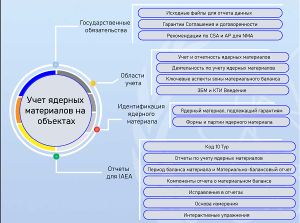 Модули электронного обучения, представленные на этой странице, охватывают основы учета ядерных материалов (NMA) для объектов до 34C, мест за пределами объектов (LOF) и зон баланса материалов. После завершения этих модулей вы сможете заполнить отчет об изменении инвентаря, список физического инвентаря и отчет о балансе материалов.Аудитория:Этот базовый курс обучения предназначен для всех лиц, участвующих в реализации гарантий в своей стране.Продолжительность: 5-15 минут на модуль / Уровень: Базовый | Интерактивность: Самостоятельное обучение | Языки: английский, испанский, русский | Сертификат: сертификат отсутствуетsafeguards training