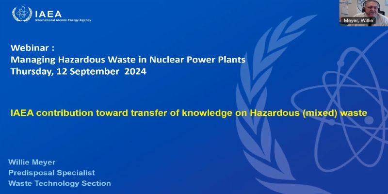 Hazardous waste arising from past activities, operating nuclear power plants (NPPs), nuclear facility operations and decommissioning projects present a considerable challenge for International Atomic Energy Agency (IAEA) Member States. Improperly handling, processing, storing and disposal of hazardous waste could pose a threat to human health and/or the environment.?This webinar discusses the successful processing of hazardous waste into a safe waste form suitable for disposal.