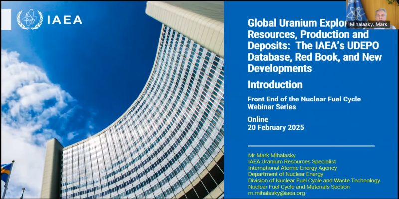 This is the second webinar an IAEA Webinar Series on the front end of the Nuclear Fuel Cycle, related to Uranium Production Cycle.Uranium production and demand experts from the IAEA and NEA discussed the IAEA uranium databases and example applications of the data, uranium demand, and the activities of the Joint OECD-NEA/IAEA Uranium Group.Moderator:Mark J. MIHALASKY?– Uranium Resources Specialist, Division of Nuclear Fuel Cycle and Waste Technology, IAEASpeakers:Franco MICHEL-SENDIS, Nuclear Energy Agency -?FranceJamie FAIRCHILD, Nuclear Energy Agency – FranceKateryna POLIAKOVSK, Nuclear Energy Agency?– France