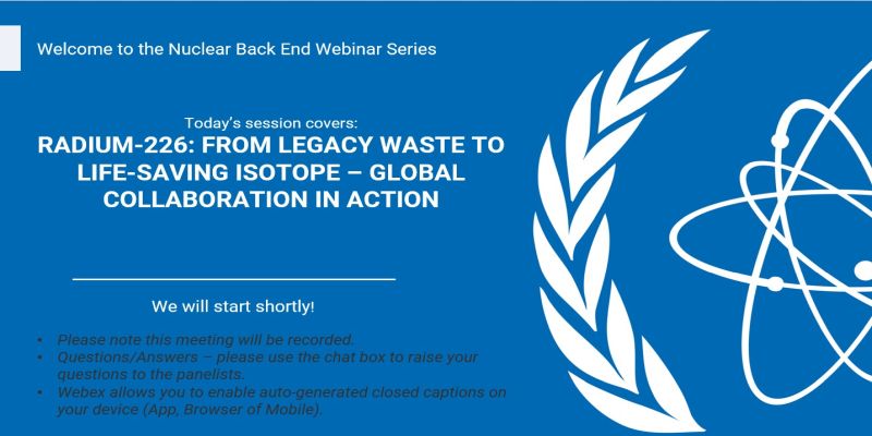 The purpose of this webinar is to?inform Member States, stakeholders, and technical experts about the current status of the IAEA’s Global Ra-226 Management Initiative, highlight achievements to date, and discuss the next steps in promoting the safe, secure, and beneficial recycling of disused Ra-226 sources for medical applications.Building on the insights shared by recipient and provider countries, the webinar aims to:Strengthen international collaboration by connecting countries with disused Ra-226 sources to those with capabilities for recycling and Ac-225 production.Encourage regulatory and technical harmonization to facilitate smoother transboundary movement of Ra-226 sources, addressing challenges in packaging, transport, and licensing.Expand the network of participating Member States by showcasing successful case studies and IAEA support mechanisms.Promote capacity building and knowledge exchange, especially for countries with limited infrastructure, through targeted training, technical cooperation, and expert missions.Support the development of sustainable supply chains for Ac-225 to meet growing global demand for Targeted Alpha Therapy (TAT).Enhance safety and security protocols for the characterization, handling, and transference of Ra-226 sources, ensuring alignment with international standards.Foster innovation and research in nuclear medicine applications using Ac-225, encouraging Member States to explore clinical and industrial opportunities.The IAEA seeks to convey that the Global Ra-226 Management Initiative is not only a waste minimization effort but a strategic opportunity to transform legacy radioactive materials into life-saving medical isotopes through global cooperation.Webinar Agenda (Total Duration: 90 minutes)Opening RemarksSpeaker: Director, Division of Nuclear Fuel Cycle and Waste Technology (NEFW)Duration: 5 minutesContent: Welcome, objectives of the webinar, and the importance of international cooperation in Ra-226 recycling.Session 1: Recipient Countries – Experience and PerspectivesDuration: 30 minutesFormat: 7.5?minutes per country presentationModerator: [Tahar HAMIDA]Featured Countries & Speakers:Australia (AdvanCell):?[Mr. Andrew Burgoyne]Presentation Title:?AdvanCell: Future Plans to Unlock 228Th for 212Pb from 226RaCanada (CNL):?Mr. Richard DufourPresentation Title:?Helping Radium-226 provider countries remove a liability while advancing healthcare worldwide.USA (Niowave):?Mr. William PetersPresentation Title:?Niowave’s Global DSRS Radium RecoveryUSA (U.S. Department of Energy):?Mr. John NeuhofPresentation Title:?U.S. Department of Energy's activities in Ra-226 recycling for medical isotope ProductionFocus: each speaker will share their organization’s experience in receiving and recycling Ra-226, technical capabilities, and contributions to Ac-225 production for cancer therapy.Session 2: Provider Countries – Contributions and ChallengesDuration: 30 minutesFormat: 7.5 minutes per country presentationModerator: [Tahar HAMIDA]Featured Countries & Speakers:Brazil (CDTN):?Mr. Rogério Pimenta Mour?oPresentation Title:?The Brazilian experience of Radium-226 transference.Guatemala (MEM):?Mrs. Mayra VillatoroPresentation Title:?The administrative and technical challenges of Radium-226 transference.Philippines (DOST):?Mr. Ronald E. PiqueroPresentation Title:?IAEA support to recover and prepare the Radium-226 for transference.Slovenia (ARAO):?Mr. Marko KostanjevecPresentation Title:?Transport challenges of Radium-226Focus:?Speakers will present their country’s role in providing disused Ra-226 sources, challenges faced in characterization, packaging, and transfer, and lessons learned.Session 3: Q&A and Closing RemarksDuration: 25 minutesModerator: [Mr Juan Carlos Benitez Navarro]Q&A (20 minutes): Open floor for participants to engage with speakers, ask questions, and share insights.Closing Remarks (5 minutes): Summary of key takeaways, next steps in the initiative, and appreciation for Member State contributions.ModeratorsJuan Carlos BENITEZ-NAVARRO: Senior Technical Experts - IAEATahar HAMIDA: Consultant - IAEA