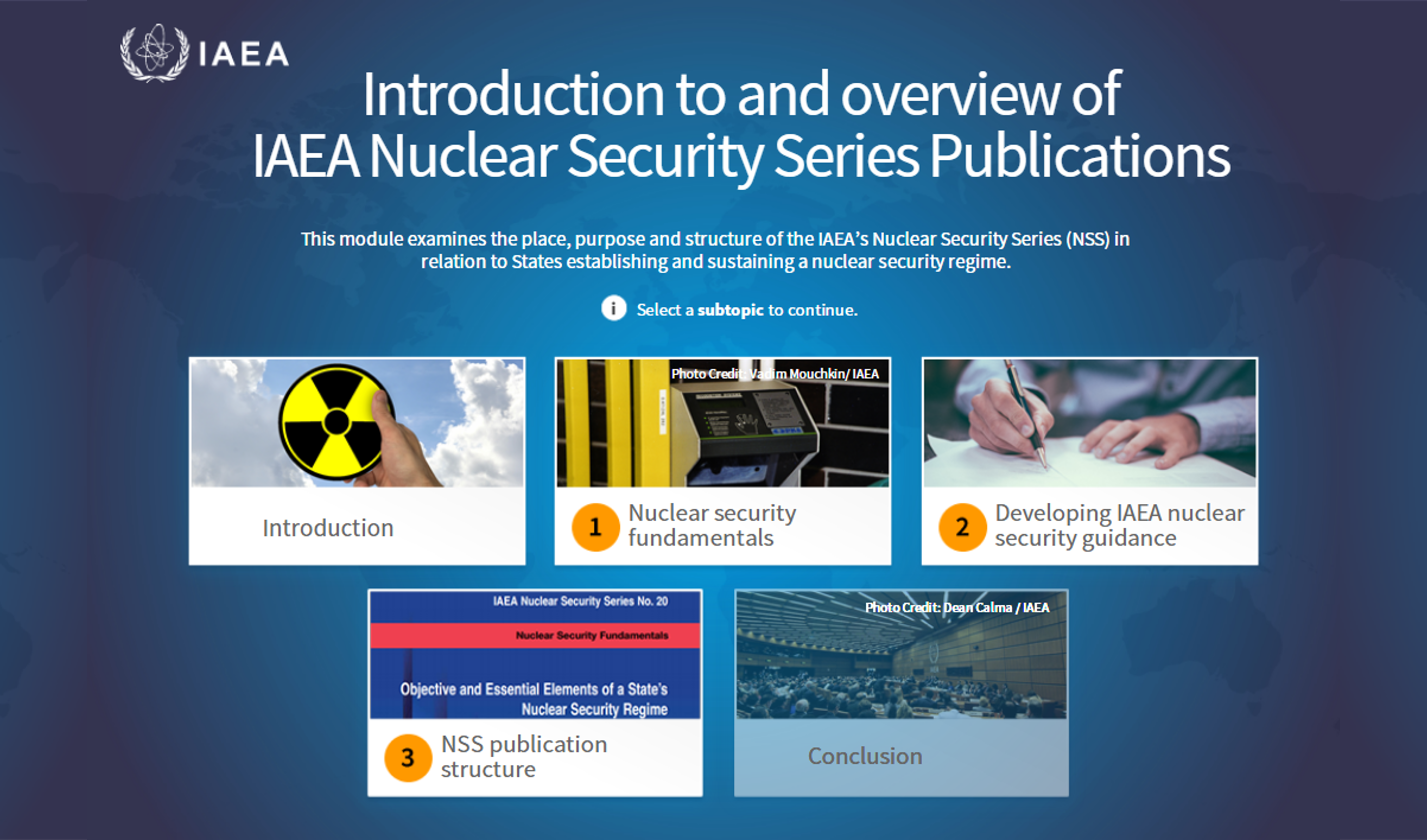 The objective of this course is to help learners understand the nature and status of IAEA guidance and its relation to international instruments; understand the categorical hierarchy and structure of the Nuclear Security Series (NSS) including the categories of material and facilities around which it is structured; and promote awareness of the processes for developing, reviewing, and revising guidance, including the Nuclear Security Guidance Committee (NSGC) and its related processes. The course is also intended to help learners become aware of the content of the guidance available and to understand and consistently use key terminology. ?? ????? ?? ??? ?????? ????????? ?? ?????? ????????? ??? ??? ????? ?????? ??????? IAEA ???????? ????????? ???????? ???? ??????? ?????? ???????? ????? ????? ????? ?????? (NSS) ??? ?? ??? ???? ?????? ???????? ???? ?????? ????? ??? ???????? ?????? ????? ??????? ????? ??????? ?????? ?????????? ??? ?? ??? ???? ??????? ????? ?????? (NSGC) ????????? ???????? ???. ????? ?????? ????????? ????? ??? ?????? ????????? ??? ????? ????? ????????? ??????? ???? ????????? ???????? ?????????? ????????. El objetivo de este curso consiste en ayudar a que los alumnos comprendan la naturaleza y el estado de las orientaciones del OIEA y su relación con diversos instrumentos de ámbito internacional, conocer la estructura de las publicaciones que componen la Colección de Seguridad Física Nuclear (NSS) y la jerarquía de las diferentes categorías de materiales y recursos en torno a las que dicha colección está estructurada, así como difundir el conocimiento de los procesos de desarrollo, revisión y actualización de las orientaciones, entre los que se encuentra el Comité de Guías de Seguridad Física Nuclear (NSGC), y de los procesos relacionados. Con el curso también se pretende ayudar a concienciar a los alumnos sobre el contenido de las orientaciones disponibles y a comprender y utilizar de manera coherente la terminología clave. L’objectif de cette formation est d’aider les apprenants à comprendre la nature et le statut des orientations de l’AIEA et leur relation avec les instruments internationaux?; à comprendre la hiérarchie catégorielle et la structure de la collection Sécurité nucléaire (NSS), y compris les catégories de matières et d’installations autour desquelles elle est structurée?; et à promouvoir la sensibilisation au processus d’élaboration, d’examen et de révision des orientations, y compris le Comité des orientations sur la sécurité nucléaire (NSGC) et ses processus connexes. La formation vise également à aider les apprenants à conna?tre le contenu des orientations disponibles et à comprendre et utiliser de manière cohérente la terminologie clé. Цель данного курса?— помочь обучающимся понять характер и статус руководящих материалов МАГАТЭ и их связь с международнымиинструментами, дать представление об иерархии и структуре серии изданий по физической ядерной безопасности (NSS), включая категории материалов и установок, по отношению к которым строится структура этой серии, а также повысить степень информированности о процессах разработки, проверки и рецензирования руководящих материалов, включая действия Комитета по руководящим материалам в области физической ядерной безопасности (NSGC) и сопутствующие процедуры. Кроме того, этот курс поможет обучающимся ознакомиться с доступным содержанием руководящих материалов, а также понять и последовательно использовать ключевую терминологию. 本課程的目標是幫助學員了解 IAEA 指南的性質和地位及其與國際文書的關系;了解《核安保叢書》(NSS) 的類別層級及結構,包括其內容構建所依據的材料和設施類別;以及促進對指南制定、審查和修訂過程的認識,包括核安保指導委員會 (NSGC) 及其相關流程。本課程還旨在幫助學員了解可用的指導文件的內容,以及理解和一致地使用關鍵術語。The audience for this course is intended to include all personnel with nuclear security responsibilities: government policy makers and strategists, competent authorities including regulatory bodies, intelligence agencies, security agencies, response personnel, law enforcement agencies, and facility operators and carriers. ?? ?????? ?? ????? ????? ??? ?????? ????????? ???? ???????? ????? ??????? ????????? ????? ?????? ??????: ???? ???????? ???????? ?????? ?????????????? ???????? ??????? ??? ?? ??? ??????? ???????? ??????? ??????????? ??????? ????? ????????? ?????????? ??????? ????? ??????? ?????? ??????? ?????? ?????. Este curso está destinado a todas aquellas personas que tengan algún cargo o responsabilidad en materia de seguridad física nuclear: legisladores y estrategas de administraciones públicas, autoridades competentes (desde organismos reguladores y agencias de inteligencia hasta agencias de seguridad, personal de respuesta en caso de emergencia y cuerpos y fuerzas de seguridad del estado), así como titulares y operadores de instalaciones nucleares. Cette formation est destinée à toutes les personnes qui ont des responsabilités liées à la sécurité nucléaire?: les décideurs et stratèges de la politique gouvernementale, les autorités compétentes y compris les organismes de réglementation, les organismes de renseignements, les organismes de sécurité, le pe