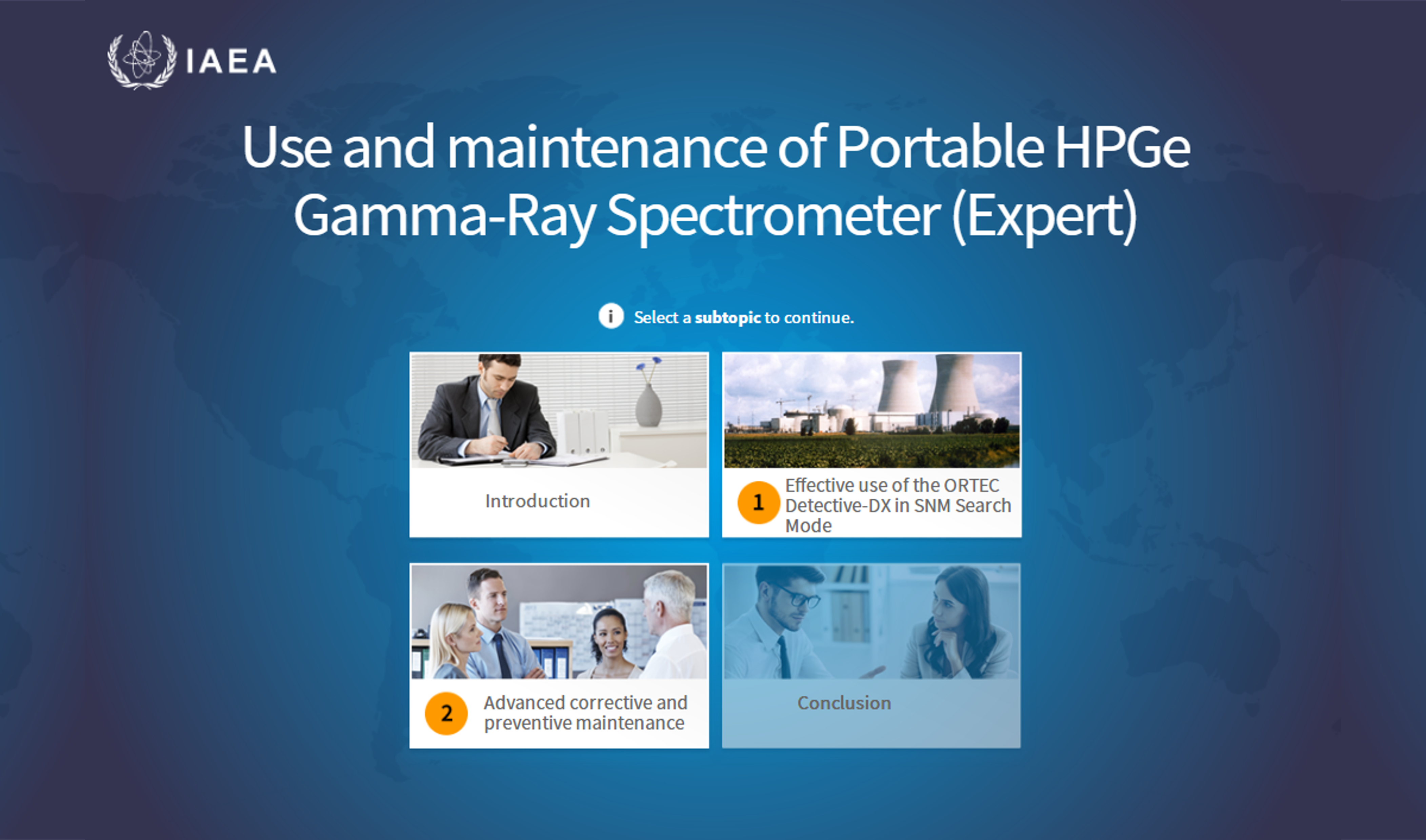 The goals of this e-learning is to provide learners with understanding and instructions on the effective operation, as well as corrective and preventive maintenance actions on a portable HPGe gamma-ray spectrometer.There are two target audiences for this module: Front Line Officers (FLOs) from competent authorities involved in the detection of, and response to, nuclear or other radioactive material out of regulatory control (including Customs, Border Security, Law Enforcement, Intelligence, and Security Services); and Experts from the National Regulatory Bodies dealing with nuclear and other radioactive material and from competent authorities involved in the detection of, and response to, nuclear or other radioactive material out of regulatory control (including Customs, Border Security, Law Enforcement, Intelligence, and Security Services).Duration: 3 h?| Interactivity:?Self-study?|?Languages:?English?|?Certificate: Completion Certificate?|?Contact: nsnselearning@iaea.org?...full course description...