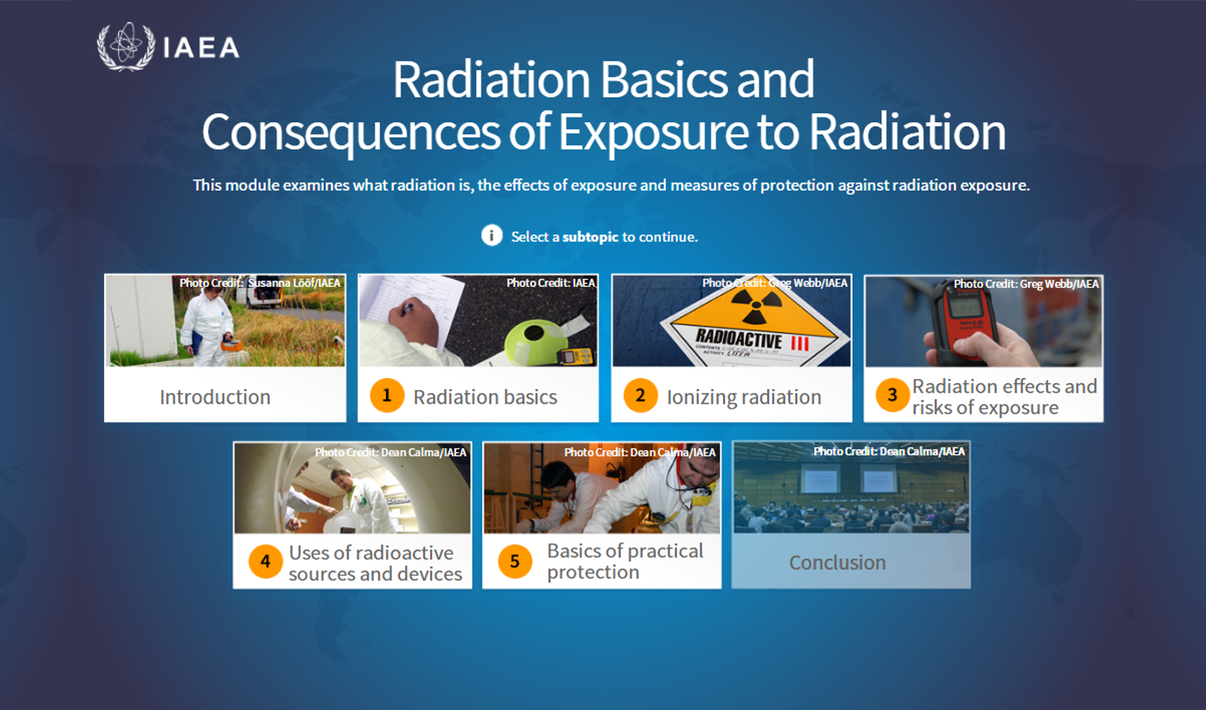 The objective of this course is to provide an essential understanding of radiation, its types, units of measurement, biological effects, associated risks and principles of protection when dealing with radiation sources. ?? ????? ?? ??? ?????? ????????? ?? ????? ??? ????? ??????? ??????? ?????? ????? ?????? ?????????? ???????? ???????? ?? ?????? ??????? ??? ??????? ?? ????? ???????. El objetivo de este curso es proporcionar unas nociones básicas sobre la radiación, así como sus tipos, unidades de medida, efectos biológicos y riesgos asociados, y sobre los principios de protección al manejar fuentes de radiación. L’objectif de cette formation est de dispenser les connaissances essentielles en matière de rayonnement?: ses types, ses unités de mesure, ses effets biologiques, les risques associés et les principes de la protection contre ses sources. Цель данного курса?— дать представление об излучении, его видах, единицах измерения, биологических эффектах, сопутствующих рисках и принципах защиты при работе с источниками излучения. 本課程的目標是提供與輻射有關的基本知識,包括輻射的類型、測量單位、生物效應,以及處理輻射源時的相關風險和防護原則。The audience for this course is intended for workers who may be activated to respond to nuclear security threats/events or anyone who works in a field related to nuclear or other radioactive material, including workers in the following organizations: - Governmental policy authorities. - Military, Police and Civil Defense forces. - Customs and Border protection. - Intelligence services. - Legislative authorities and Regulatory and Judiciary bodies. - Rescue and Responder Services. ????? ????? ??? ?????? ????????? ???????? ????? ?? ??? ??????? ????????? ????????/????? ????? ?????? ?? ?? ??? ???? ?? ???? ????? ??????? ??????? ?? ?????? ?????? ??????? ??? ?? ??? ???????? ?? ???????? ???????: - ????? ??????? ????????. - ?????? ??????? ????? ?????? ??????? ??????. - ??????? ?????? ??????. - ?????? ???????????. - ??????? ????????? ???????? ???????? ?????????. - ????? ??????? ??????????. Este curso está destinado a trabajadores a los que se puede movilizar para responder a amenazas para la seguridad física nuclear o sucesos relacionados con esta, así como a cualquier persona que trabaje en un campo relacionado con materiales nucleares u otros materiales radiactivos, lo que incluye a los trabajadores de las siguientes organizaciones: - organismos reguladores oficiales - ejército, policía y fuerzas de defensa civil - protección de aduanas y fronteras - servicios de inteligencia - autoridades legislativas y organismos reguladores y judiciales - servicios de rescate y respuesta a emergencias. Cette formation est destinée aux professionnels susceptibles d’intervenir en cas de menace ou d’événement de sécurité nucléaire ou à toute personne travaillant dans un domaine lié aux matières nucléaires et autres matières radioactives, notamment les employés des organisations suivantes?: - autorités politiques gouvernementales?; - forces militaires, de police et de protection civile?; - douanes et protection des frontières?; - services de renseignements?; - pouvoir législatif, organismes de réglementation et organes judiciaires?; - services de secours et d’intervention. К аудитории данного курса относятся работники, которые могут быть мобилизованы в ответ на угрозы/события, связанные с физической ядерной безопасностью, или работники отраслей, связанных с ядерными или другими радиоактивными материалами, включая сотрудников следующих организаций: – правительственные учреждения; – вооруженные силы, полиция и силы гражданской обороны; – службы таможенного и пограничного контроля; – разведывательные службы; – органы законодательной власти, регулирующие и судебные органы; – службы спасения и реагирования. 本課程的受眾為可能會被派遣去響應核安保威脅/事件的工作者或在涉及核材料或其他放射性物質的領域工作的任何人員,包括以下組織內的工作人員: - 政府政策制定機構。 - 軍隊、警察和民防部隊。 - 海關與邊境保護局。 - 情報部門。 - 立法部門以及監管機構和司法機構。 - 救援和響應服務部門。Duration: 3 h | Interactivity: Self-study | Languages: English, Arabic, Spanish, French, Russian, Chinese | Certificate: Completion Certificate | Contact: nsnselearning@iaea.org ?????? : 3 ??????| ?????? : ???? ???????? ??? ???????? | ?????: ???????? ??????????? ?????????? ????????? ???????? ??????? | ???????: ????? ????? | ???? ???????: nsnselearning@iaea.orgDuración: 3 horas | Interactividad: Autoestudio | Idioma: árabe, inglés, espa?ol, francés, ruso, chino | Certificación: Certificado de participación | Contacto: nsnselearning@iaea.org ??Durée: 3?heures | Interactivité: Autoformation | Langue: Arabe, anglais, espagnol, fran?ais, russe, chinois | Certification: Certificat d’achèvement | Point de contact: nsnselearning@iaea.org?Продолжительность: 3?часа | Интерактивность: Самообучение | Язык: Арабский, английский, испанский, французский, русский, китайский | Сертификация: Сертификат о прохождении | Контактное лицо: nsnselearning@iae
