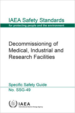 Decommissioning is the last step in the lifetime management of an authorized facility and must be considered during the design, construction, commissioning and operation of such facilities. This Safety Guide provides guidance on how to comply with requirements for the safe decommissioning of medical, industrial and research facilities. It addresses all aspects of decommissioning that are required to ensure safety, such as roles and responsibilities, strategy and planning for decommissioning, conduct of decommissioning actions and termination of the authorization for decommissioning. The intended audience are those individuals involved in policy and strategy development, regulatory control, and planning and implementation of decommissioning.