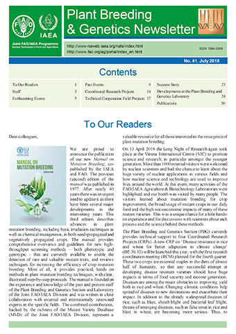 Cite this content as: INTERNATIONAL ATOMIC ENERGY AGENCY, Plant Breeding and Genetics Newsletter, No. 41, July 2018 , IAEA, Vienna (2018)